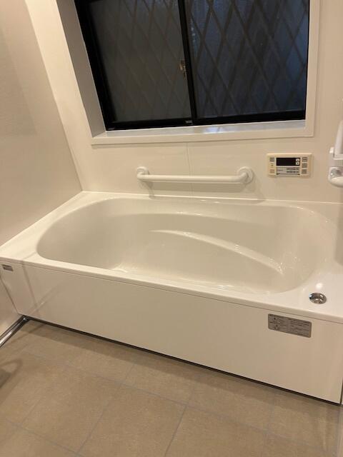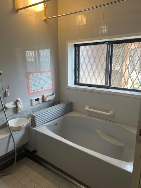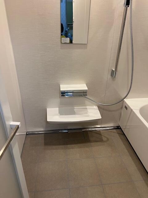 お風呂のリフォームをご相談いただきました。 最新のお風呂にリフォームすることで断熱性が上がり、お風呂での事故も防げます。 さらに窓には内窓を設置し、断熱性だけでなく防犯性もUP! 小さめのカウンターや大判タイルの床でお掃除もしやすくなります。