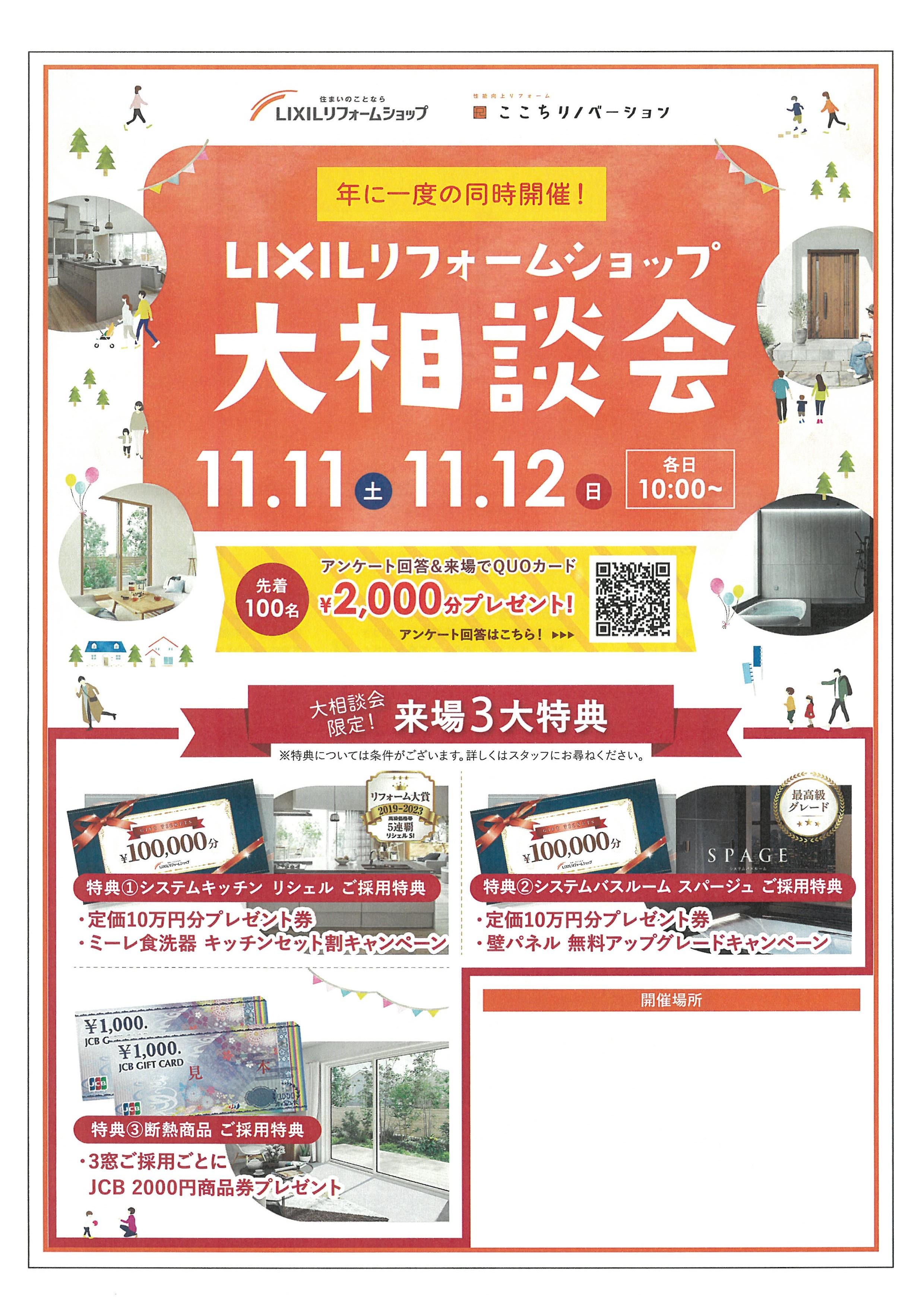 LIXILリフォームショップ大相談会【11.11(土)、12(土)】 (908.9 KB) 一覧へ戻る