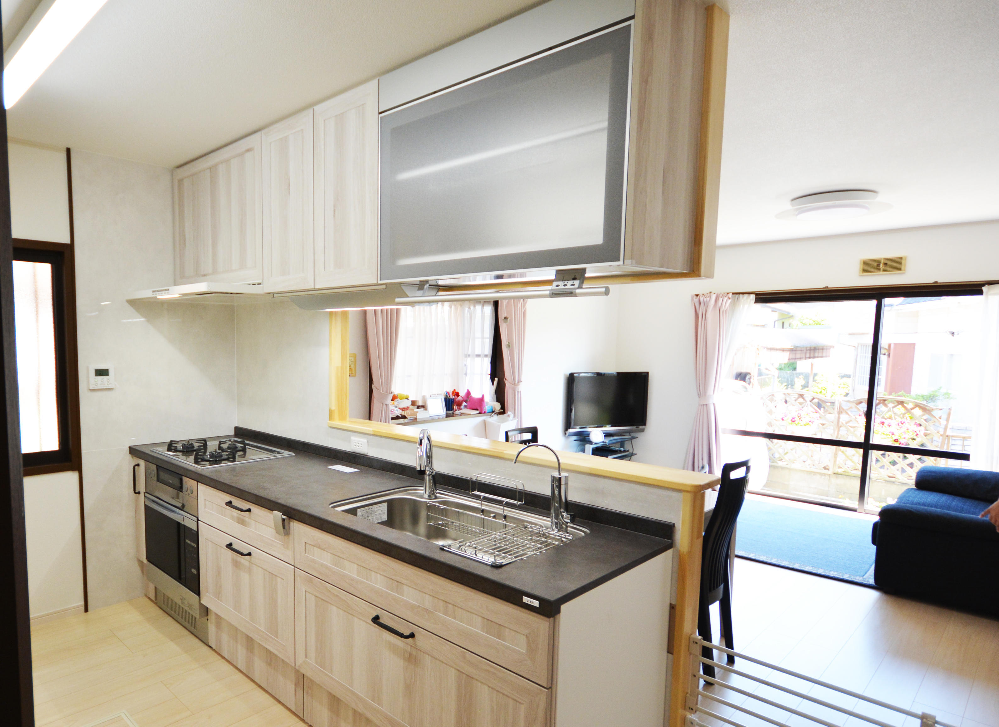 長く使える、丈夫なキッチンをご希望だったO様。ショールームで一目惚れされたリシェルのキッチンに合わせて建材をご選択頂き、お嬢さま好みのカフェ風キッチンとなりました。また、浴室・洗面室も一新され、浴室の入り口も引き戸となったことで、ご夫妻にとっても将来的に安心なお住まいになりました。ご家族皆様に大変喜んでいただき、こちらも元気をいただきました。