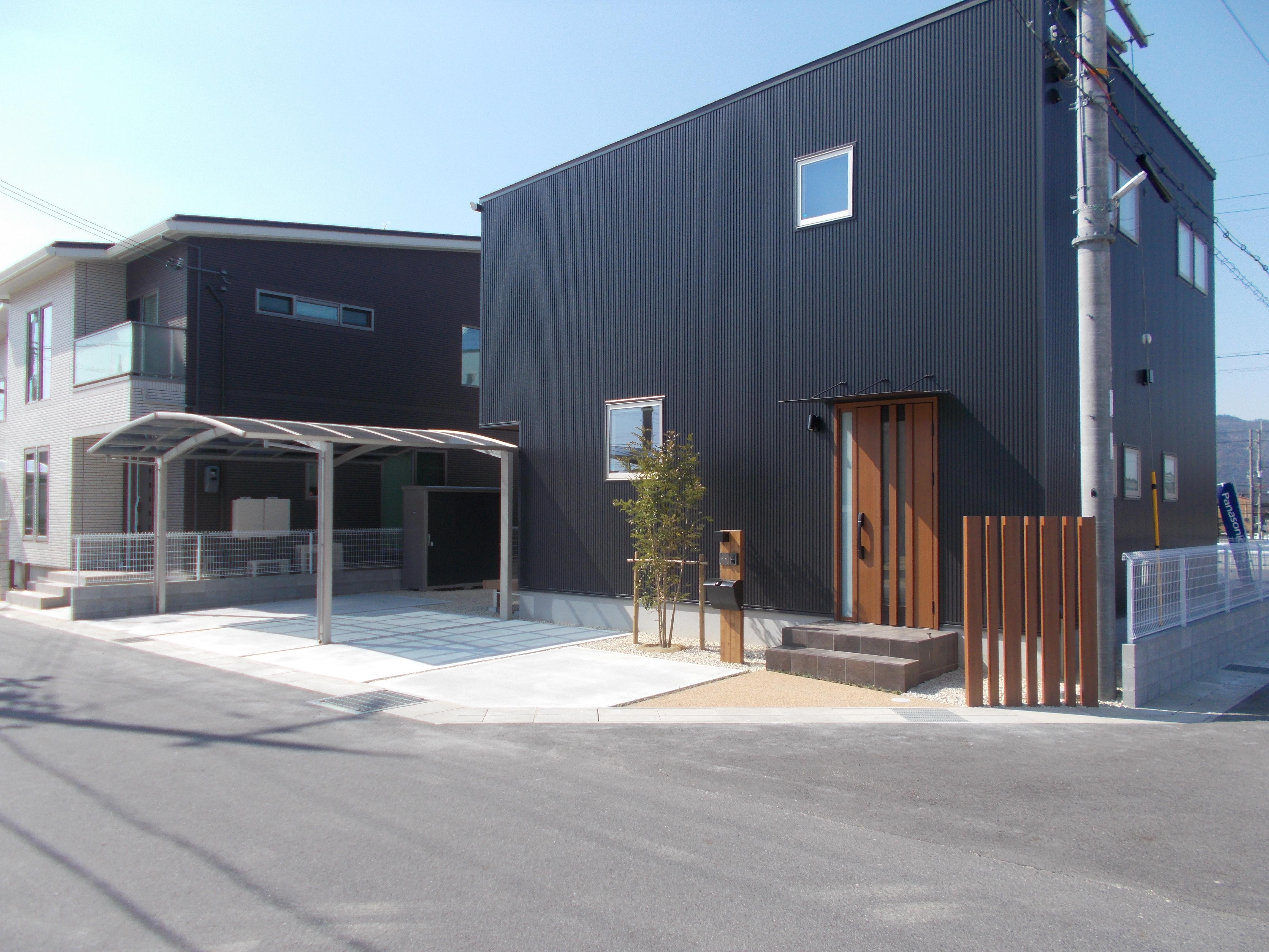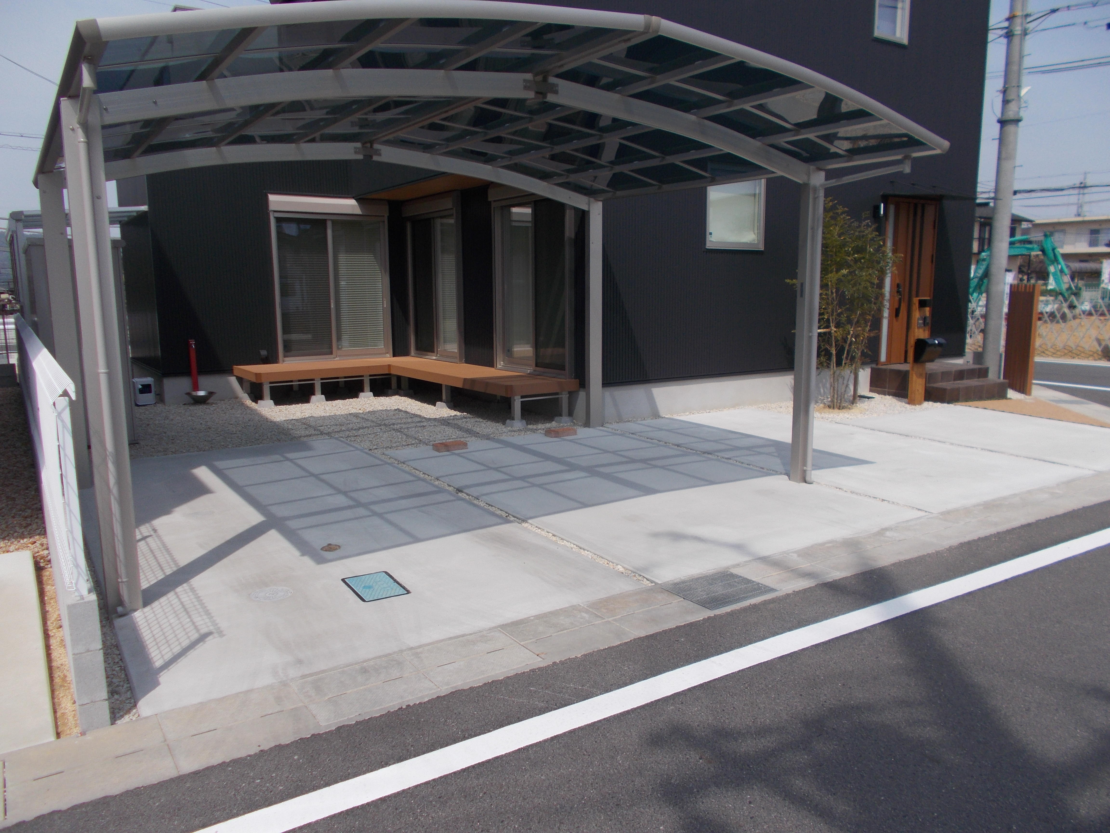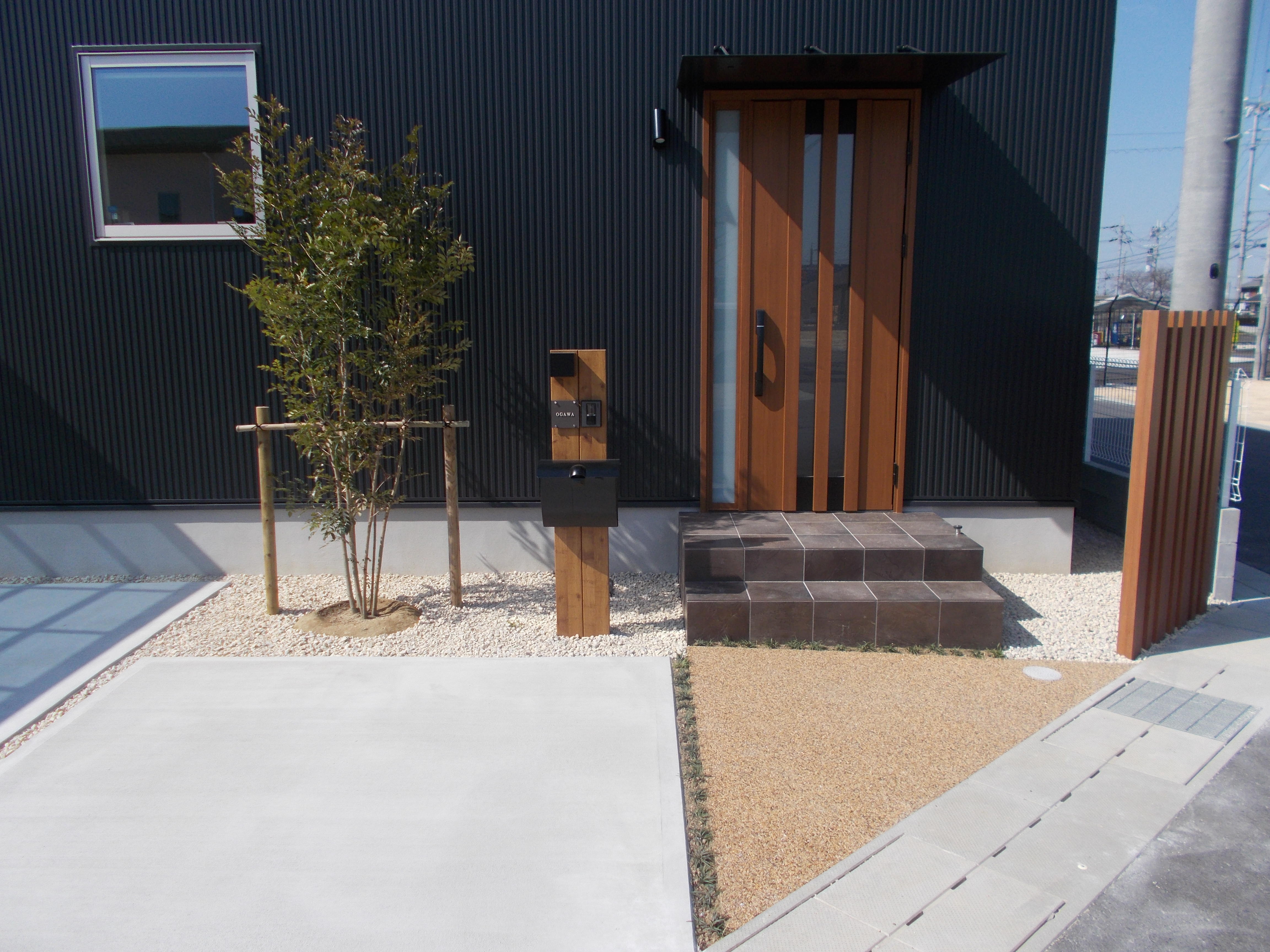 イメージを統一するために、建物とエクステリアに統一感を持たせています。スクエアな建物の雰囲気を壊さない、シンプルですっきりとした外構となりました。