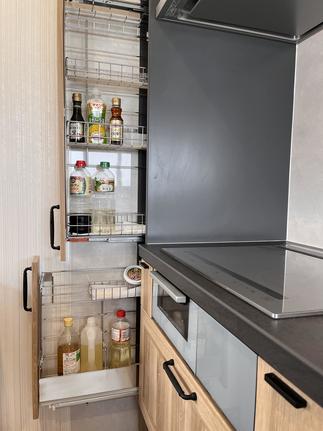 そこで採用したのはLIXILのキッチン リシェルSI。斜めに傾く扉がポイントのスライド式大容量キャビネットは「食器棚が無くても家族全員の食器が全て入ります!」とお喜びいただけました。完成後の撮影の際にリフォーム前の写真を見ていただくと、こんなにも物があふれかえっていたんやね…と驚きの様子。スッキリと片付いたキッチンで作業効率もアップしそうですね。