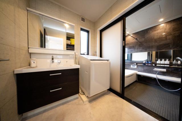 フラットな持ち手のバーが立ち座りや洗い場から浴槽までの移動をサポートしてくれます。床は冬場でも冷たさを感じにくいキレイサーモフロア!リフォーム前は折り戸タイプの扉でしたが、今回は引き戸タイプを採用。引き戸は横にずらすだけですので折り戸や開き戸のような開閉スペースが取られずに空間を有効活用することができます。また、スライド式ですのでお子様やご年配の方でも簡単に開閉できるのも引き戸のメリットです。