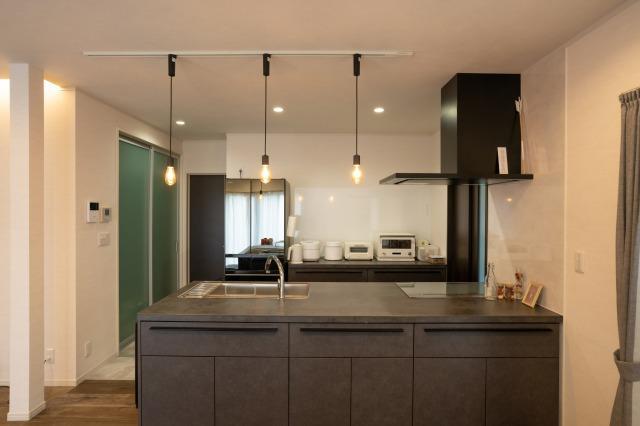 奥様がこだわって選ばれたキッチンはLIXILのリシェルSI。熱や傷・汚れに強いセラミックトップの天板に、自動で吐水・止水の操作が出来るセンサー付き水栓・軽い力で取り出せる収納力抜群のフロアユニット・ビルトインタイプの食洗器・・・機能性抜群で家事の手間を少しでも省いて作業が時短に!こだわりのキッチンを一層オシャレに映えさせてくれるペンダントライトも素敵。