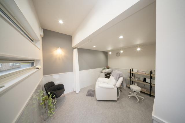 外部物入は増築して奥様のお仕事部屋であるネイルサロンへ!ツートンのクロス使いがとってもお洒落。品のある落ち着いた空間でお客様もゆったりくつろいで施術を受けられそうです。
