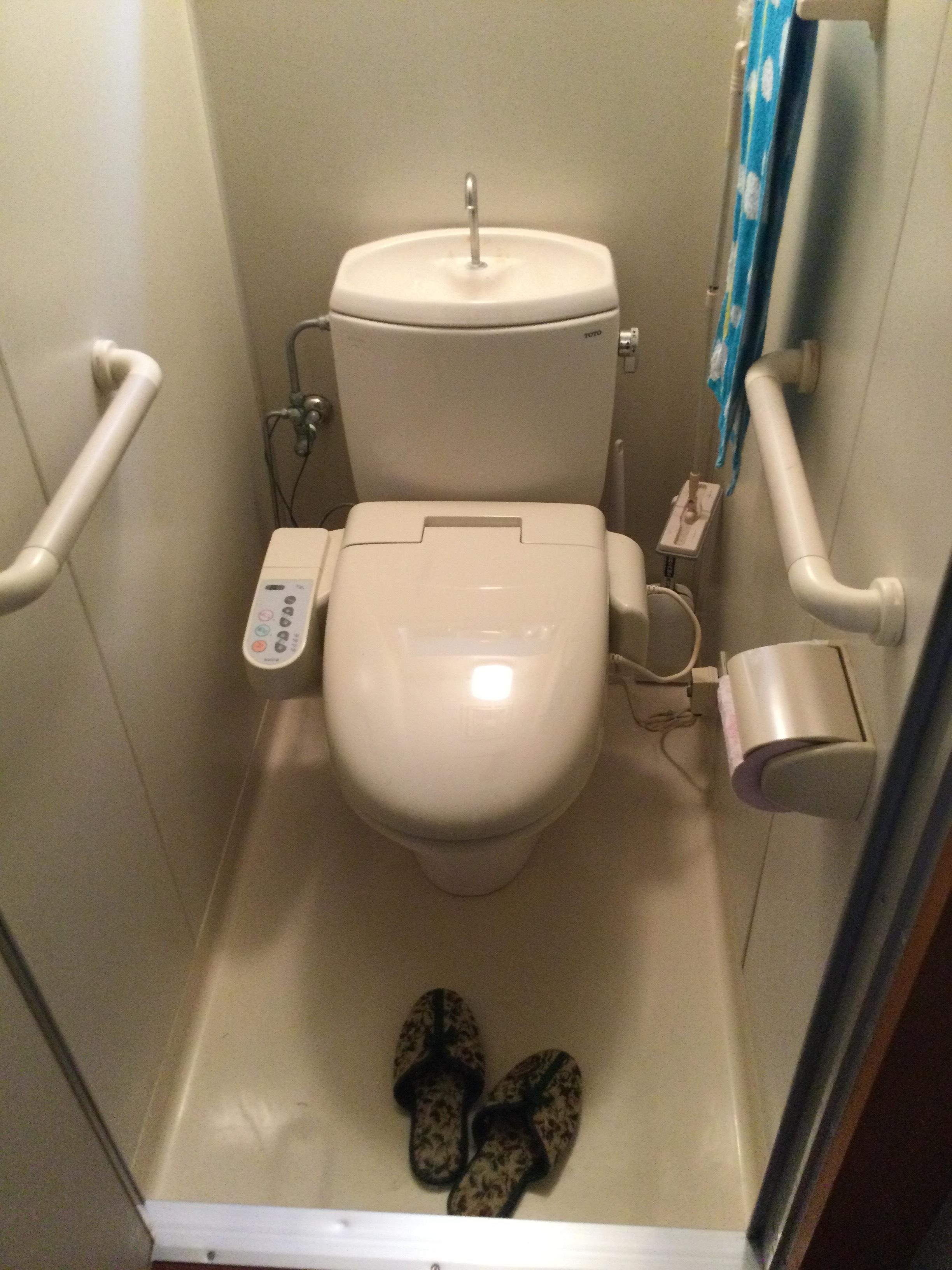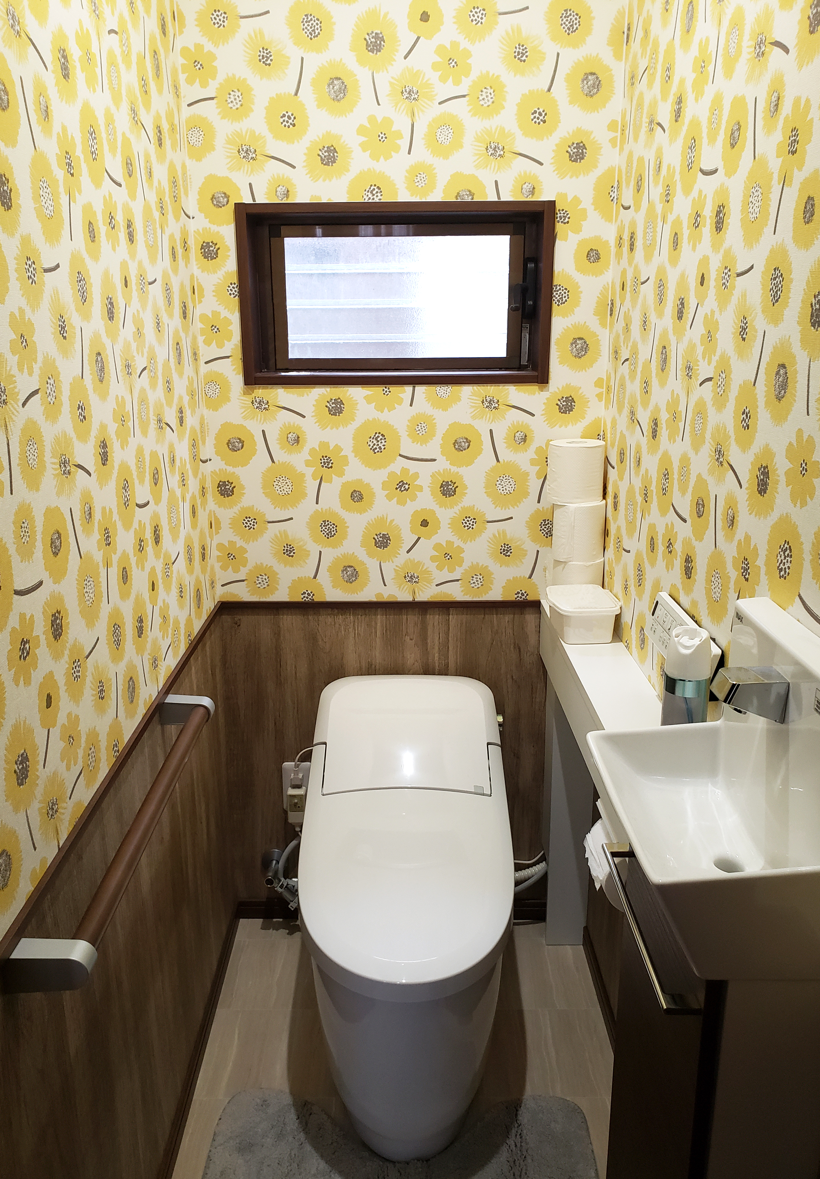 元々がユニットのトイレ。狭く窮屈なので広くしたいとのご要望。 ユニットトイレを全て解体し、空間を広く取りました。廊下が引っ込んでいたので、扉をその分前に取り付けることでトイレと扉との距離も余裕が生まれました。 広くて使い易くなり、トイレの雰囲気も明るくなりましたとお喜びいただけました。