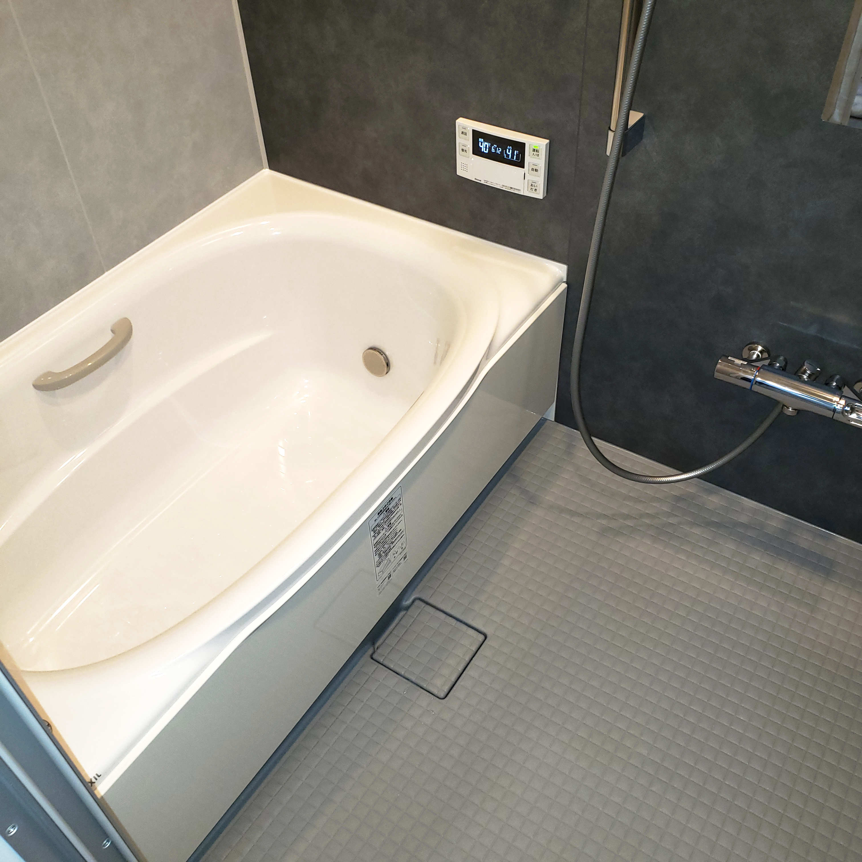ユニットバスからユニットバスへのお取替え。採用したのはLIXIL リデア サイズ1318壁パネルは鏡面のみをモルティオダークに。つやのないマットな質感で高級感が高まります。暗めのお色もアクセントとして取り入れることで明るく仕上がります。浴室窓もお取替えして断熱対策もばっちり!浴室窓:LIXIL サーモスL上げ下げ窓