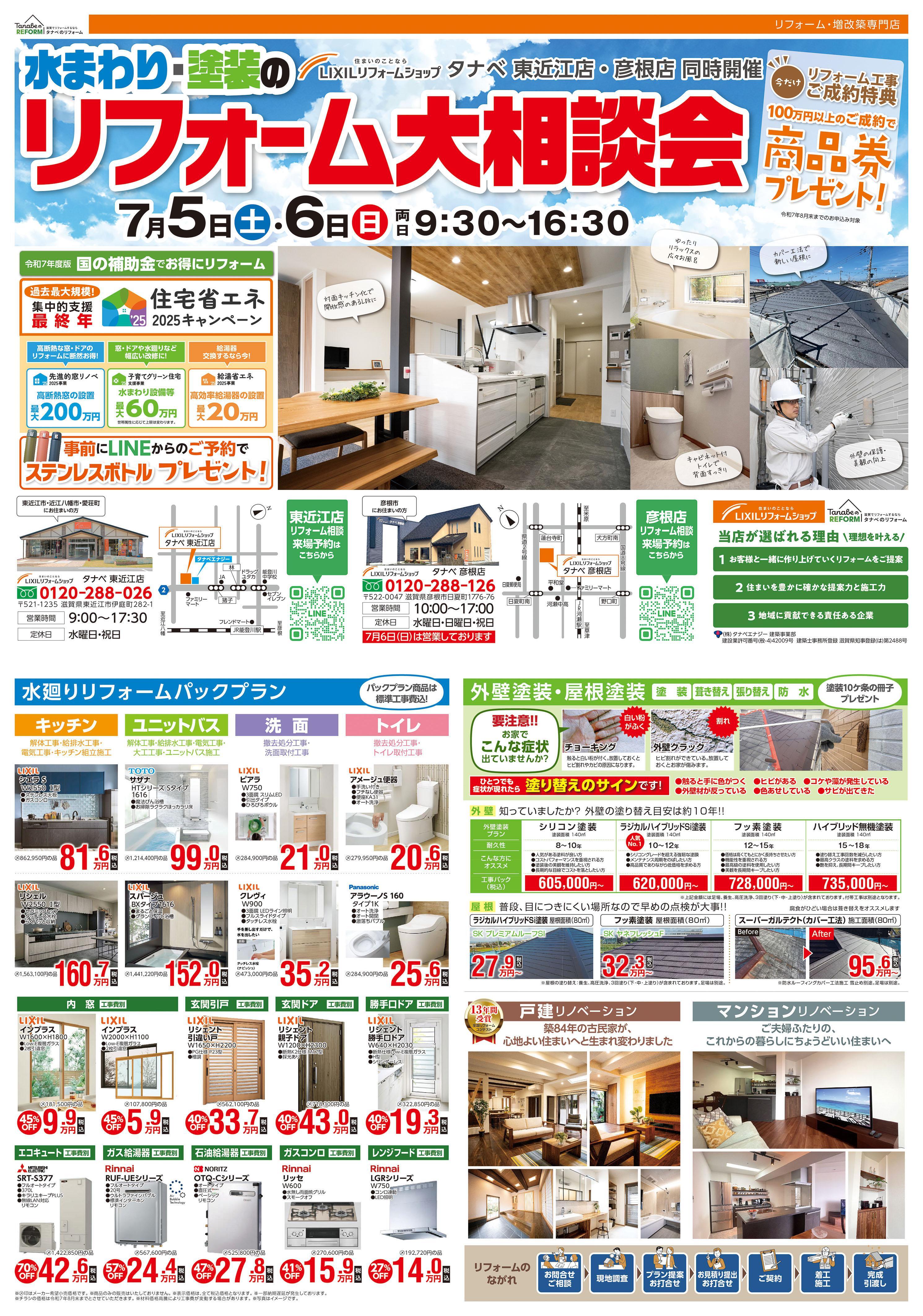 来る7月5日(土)・7月6日(日)にリフォーム大相談会を開催いたします。
