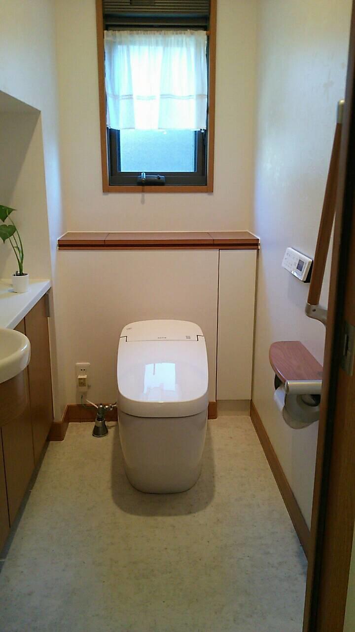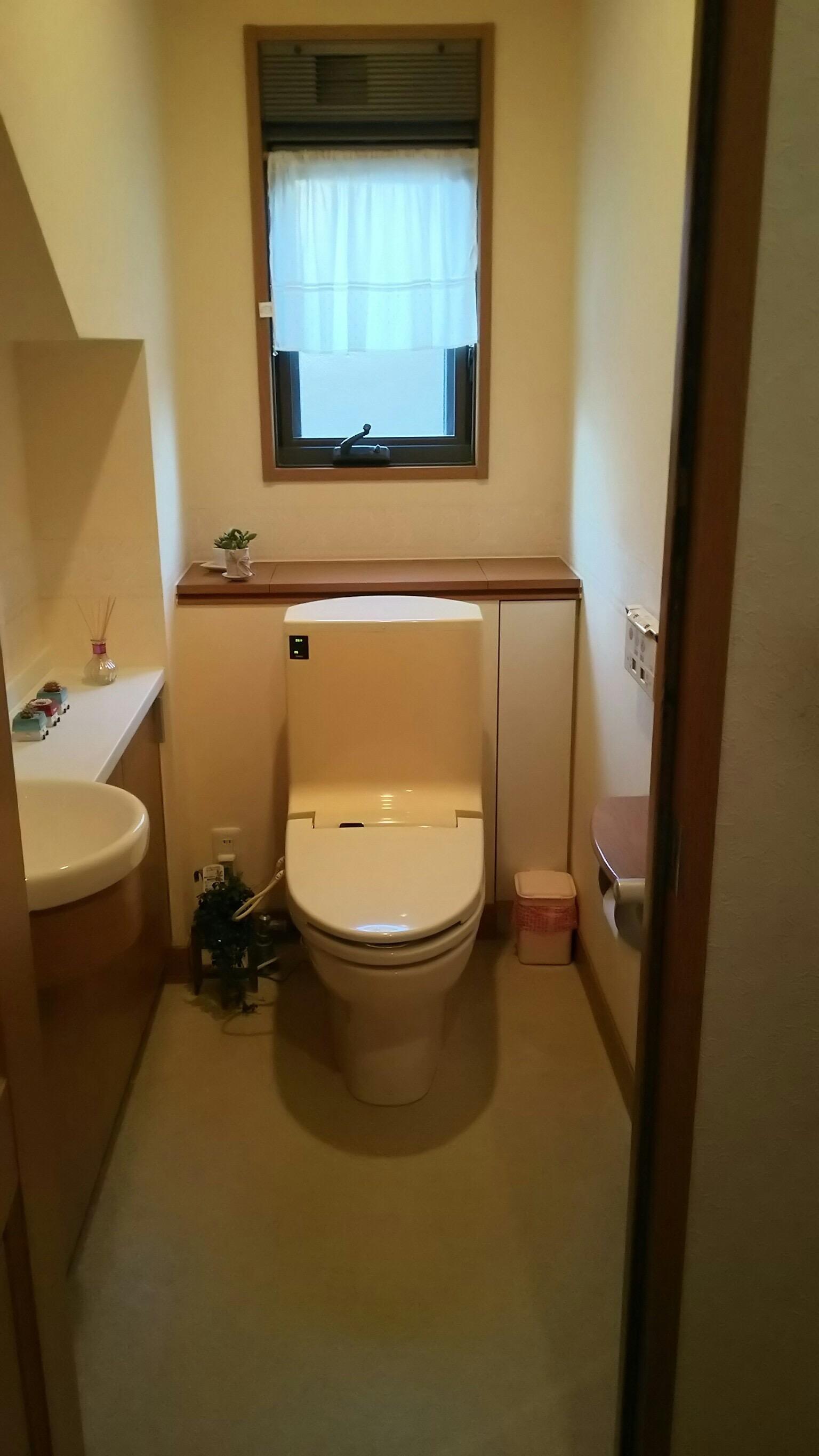 長年に渡りお子様たちの成長を見守り続けたお宅も、そろそろ水廻りを中心にリフォームが必要となってきました。まずは1Fのトイレから。従来のタンク式トイレからタンクレストイレにリフォームして見た目もスッキリ。美しいリラックス空間が生まれました。