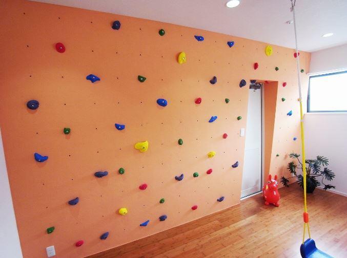 奥様のご出産にあわせ、お部屋を増築。大人もできる壁一面のボルタリングや、ブランコをつけました。