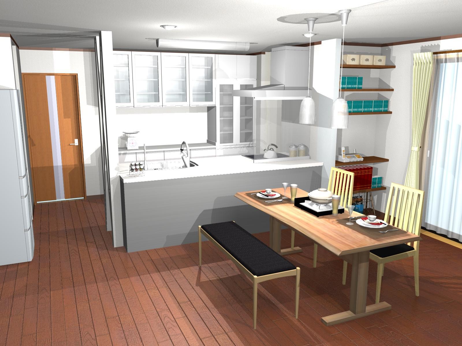 キッチンはステンレス製をご希望されました。キッチンの後ろの食器棚を同系色でまとめることで統一感をだしました。今まで独立していたキッチンでしたがリビングとの壁を取り除き、対面型にすることで、開放感を出して、ダイニングにいるご家族とのコミュニュケーションが取れる場となりました。