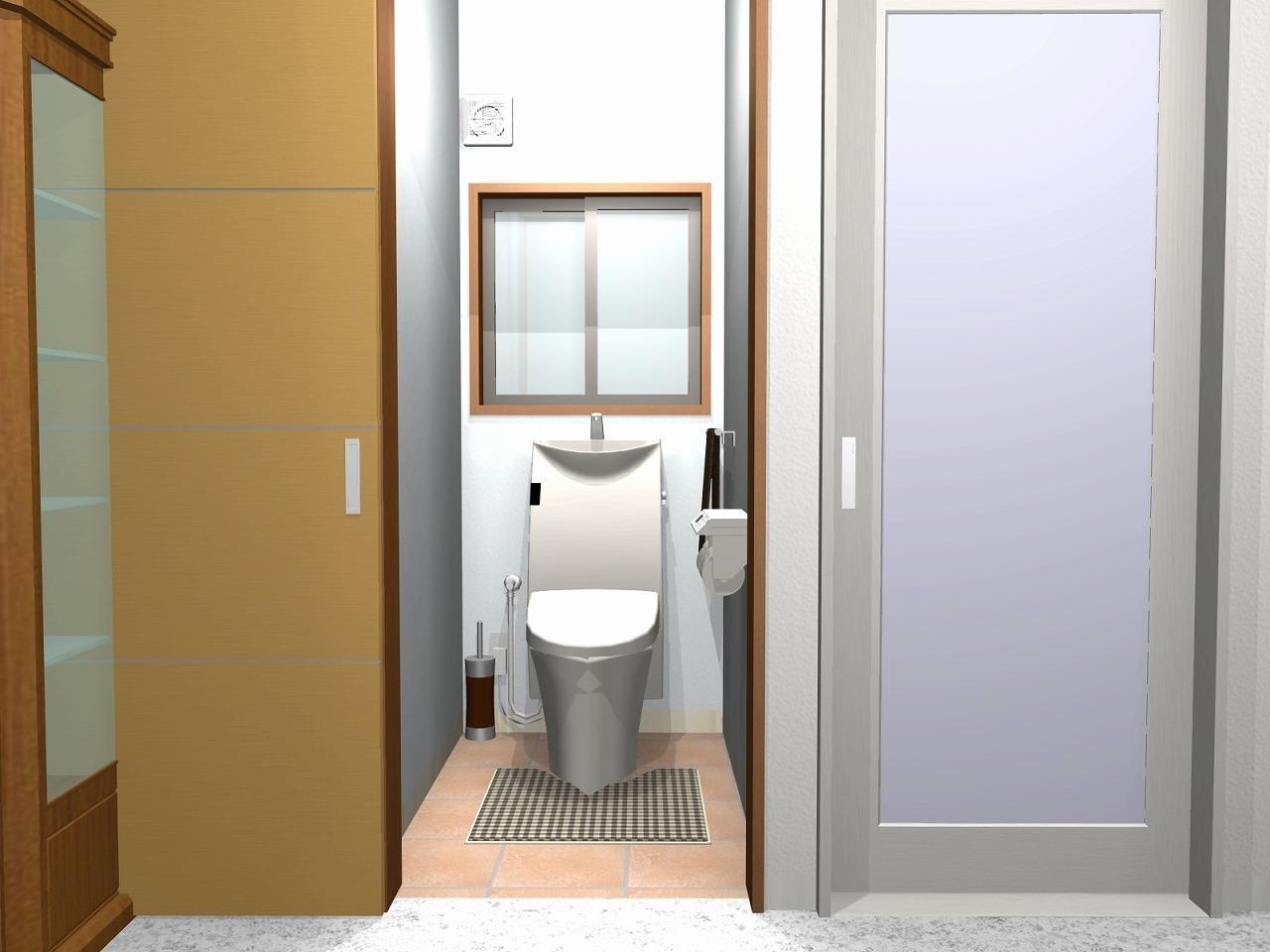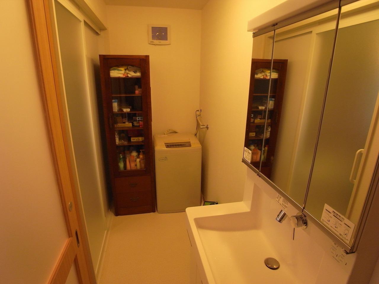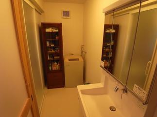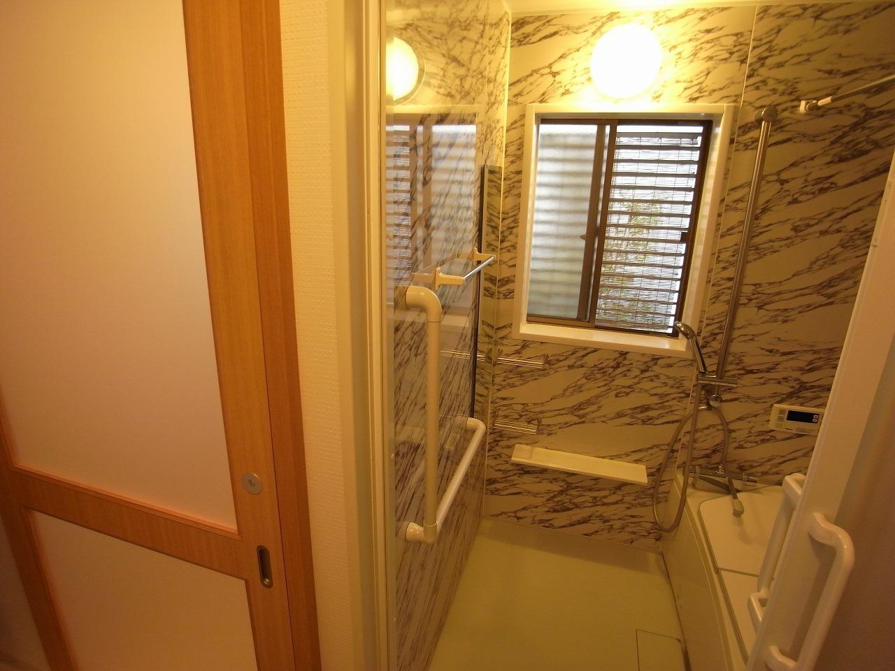 洗面室・トイレ・浴室はバリアフリーへ。またトイレと浴室の入り口のドアも引き戸にかえることで、使い勝手がよくなりました。玄関ホールには目隠しも兼ねてアクセントに縦にスリットを入れました。玄関のドアは採風タイプのドア変えたので、家の中には、風が通るようになりました。