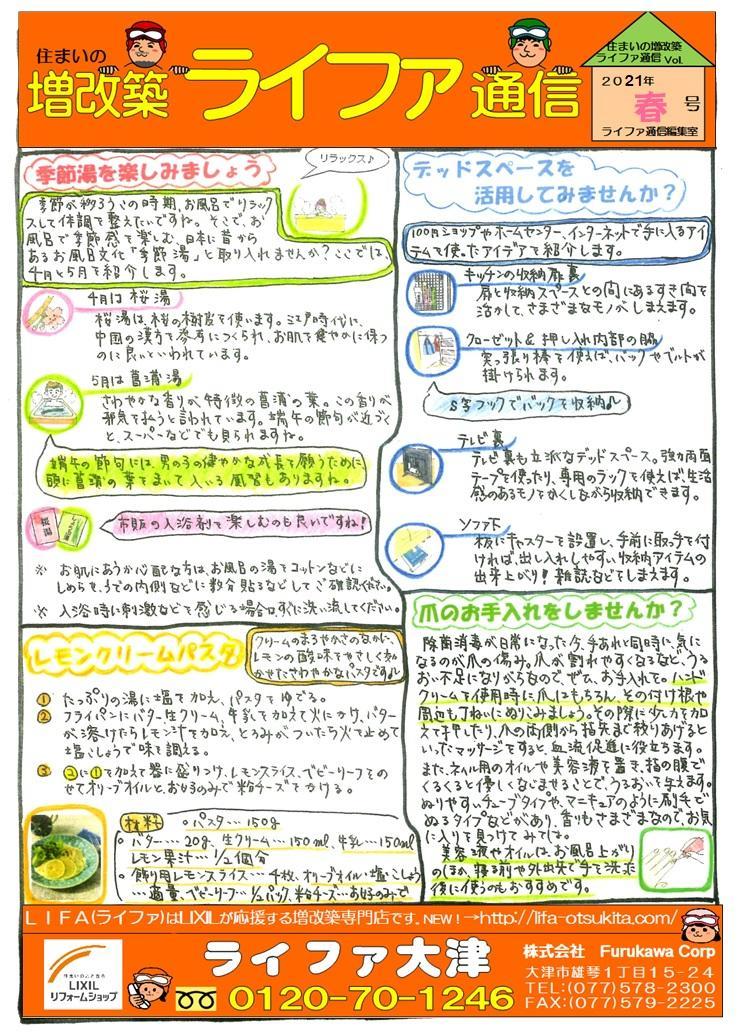 さて今回もライファ大津北の、年4回発行しています"増改築ライファ通信"が出来ましたのでご覧ください。
