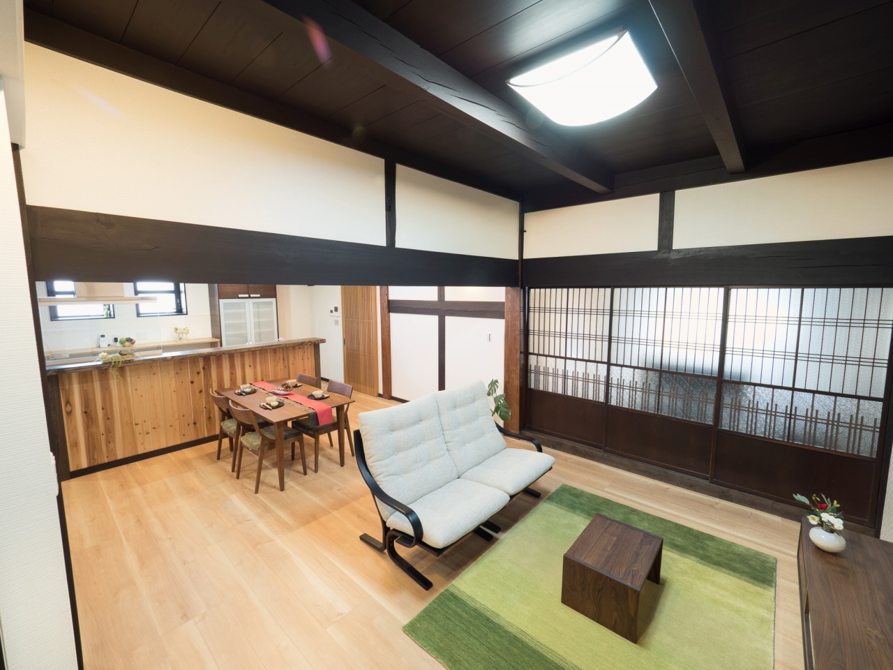 段差の多いお住まいが、玄関からLDK、寝室、水廻りまでバリアフリーになり、行き来しやすくなったと喜んでいただきました。 リフォームでこそ生まれたO様邸だけの解放感と重厚感を併せ持つLDKに仕上がりご満足いただけてとても嬉しく思います。