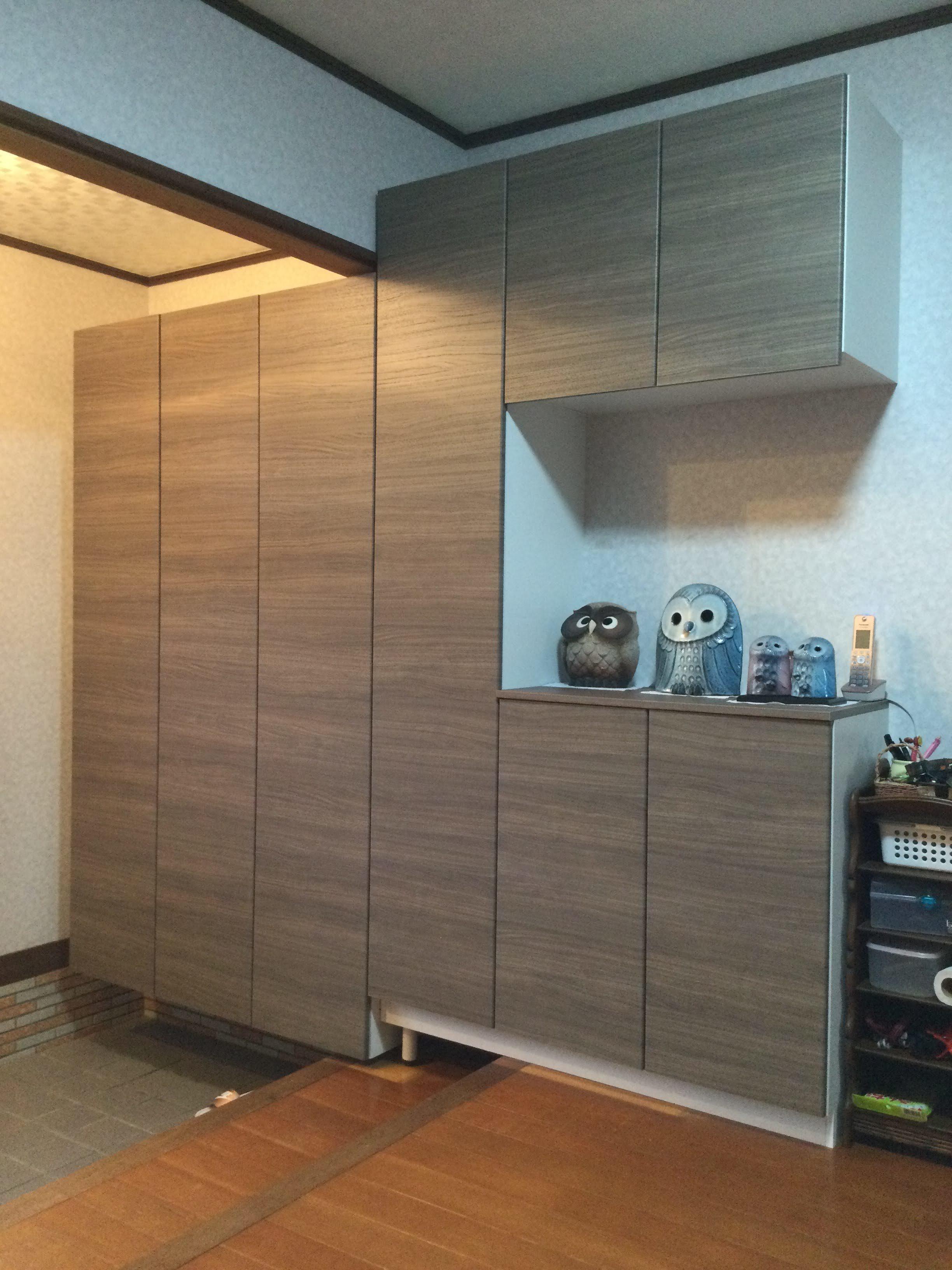 収納量に合わせて組み合させることができるため、住まいのスタイルに合わせた玄関収納が完成!ご要望通り、沢山の靴がキレイに収まりスッキリとした玄関に生まれ変わりました!