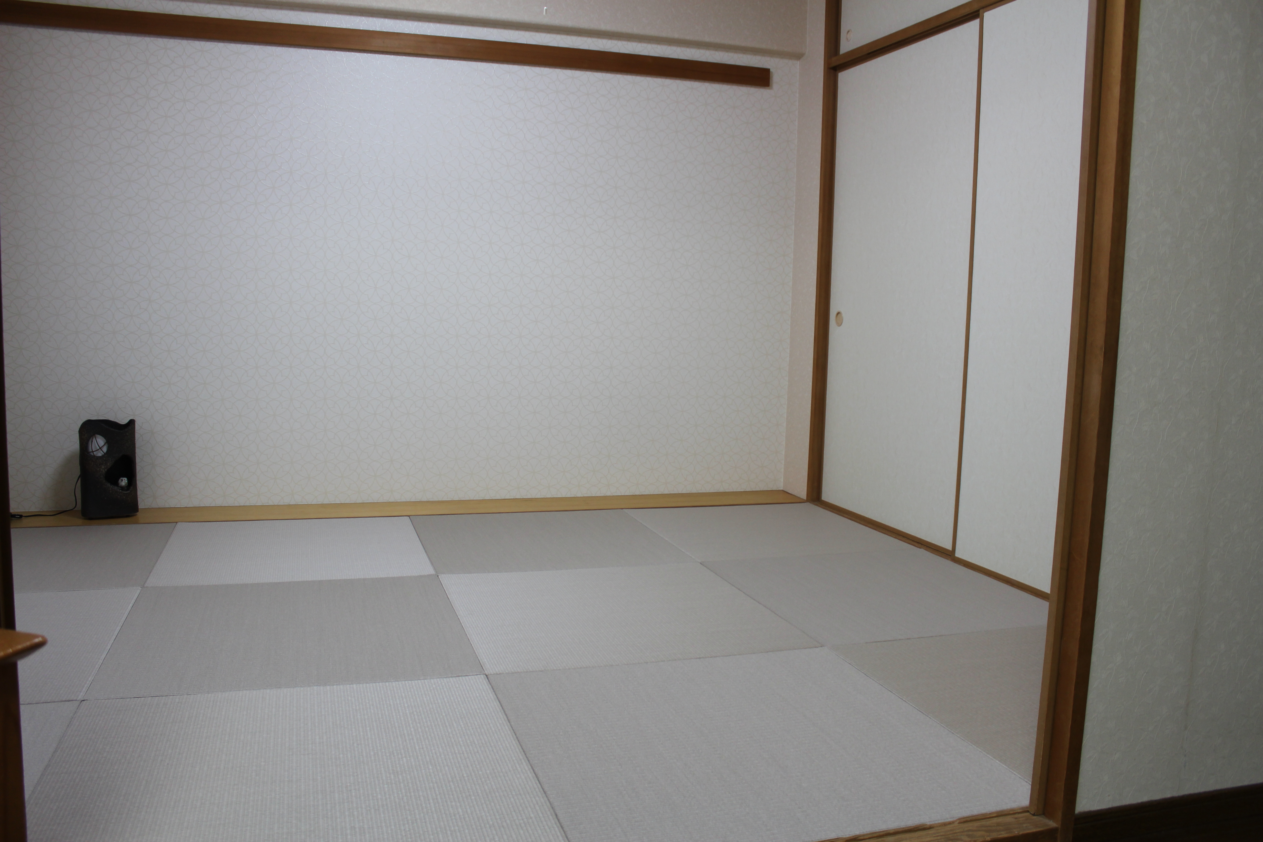 経年劣化で汚れがひどかった和室は、天井以外全てを新しくしました。モダンでオシャレな和室にしたいと、ご希望されていたので、畳を半帖タイプのカラー畳で奥様のお好きそうなグレージュ(グレーとベージュの混じった色)をご提案しました。気に入って頂き、アクセントクロスと壁紙をご自身で選ばれました。とても素敵な和室になりました。