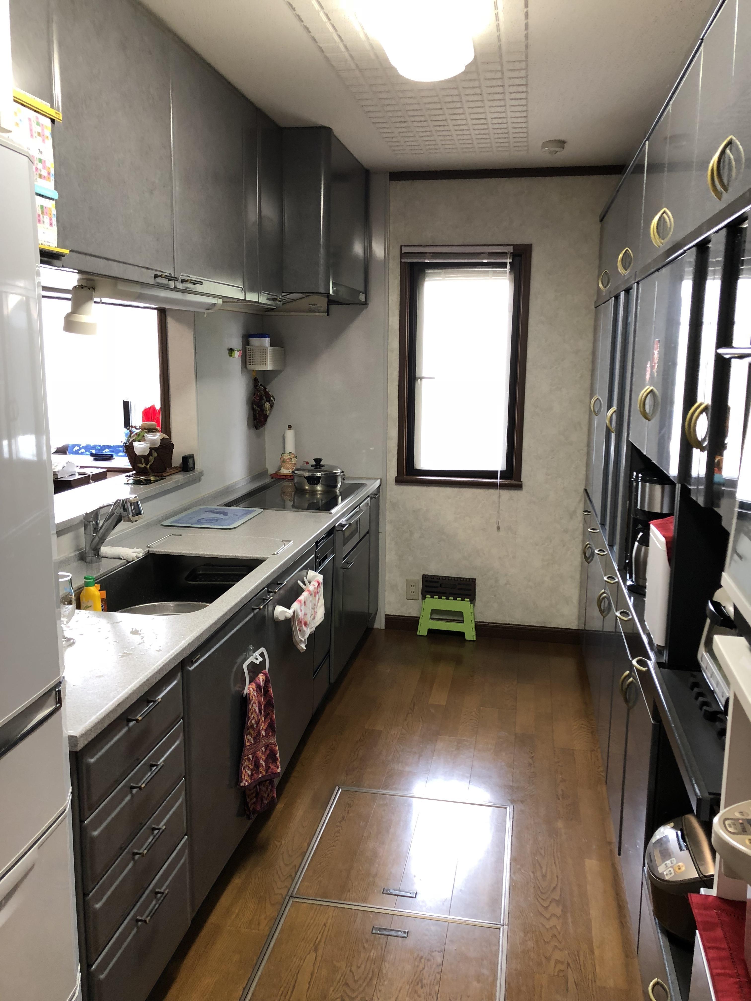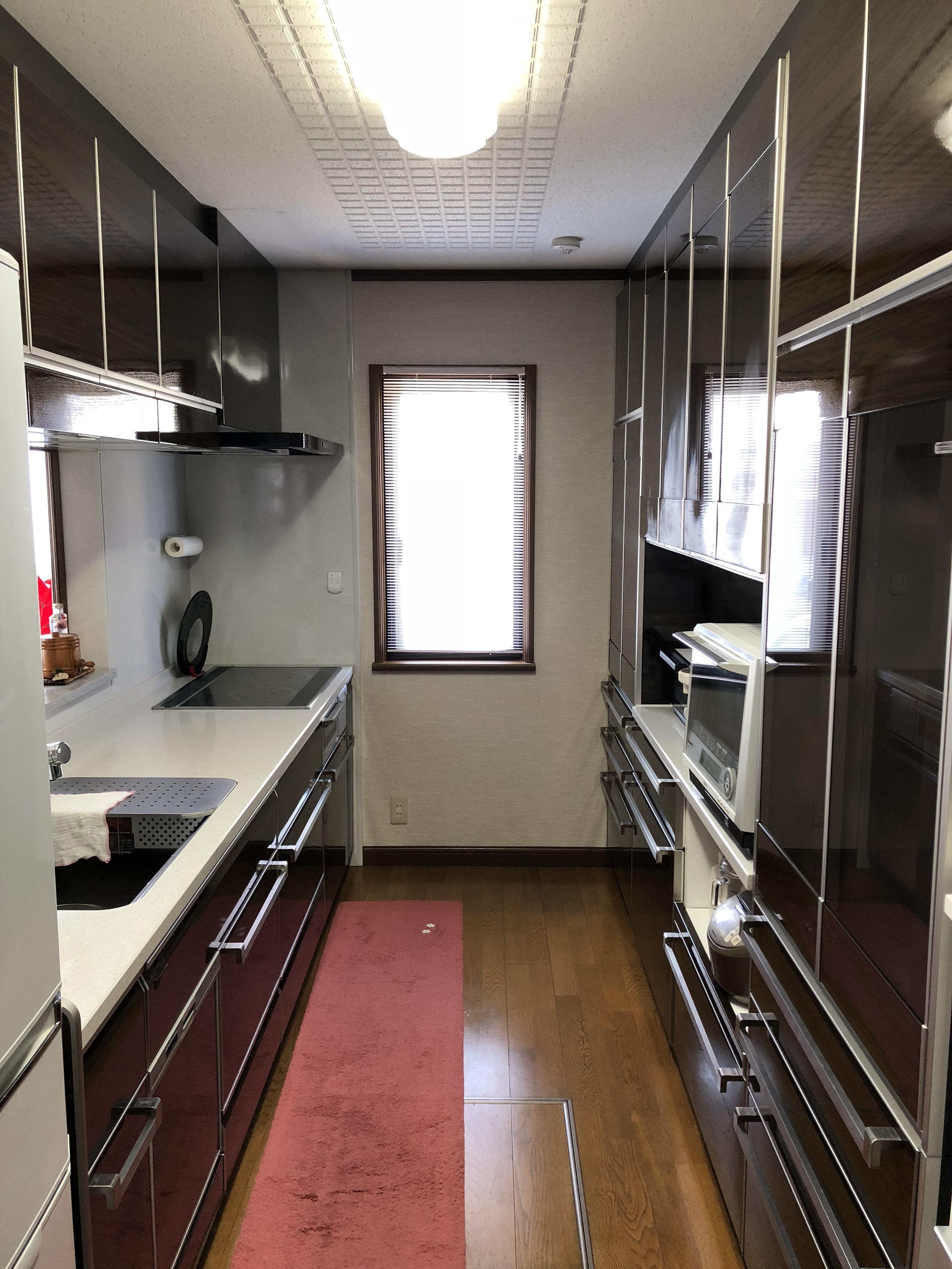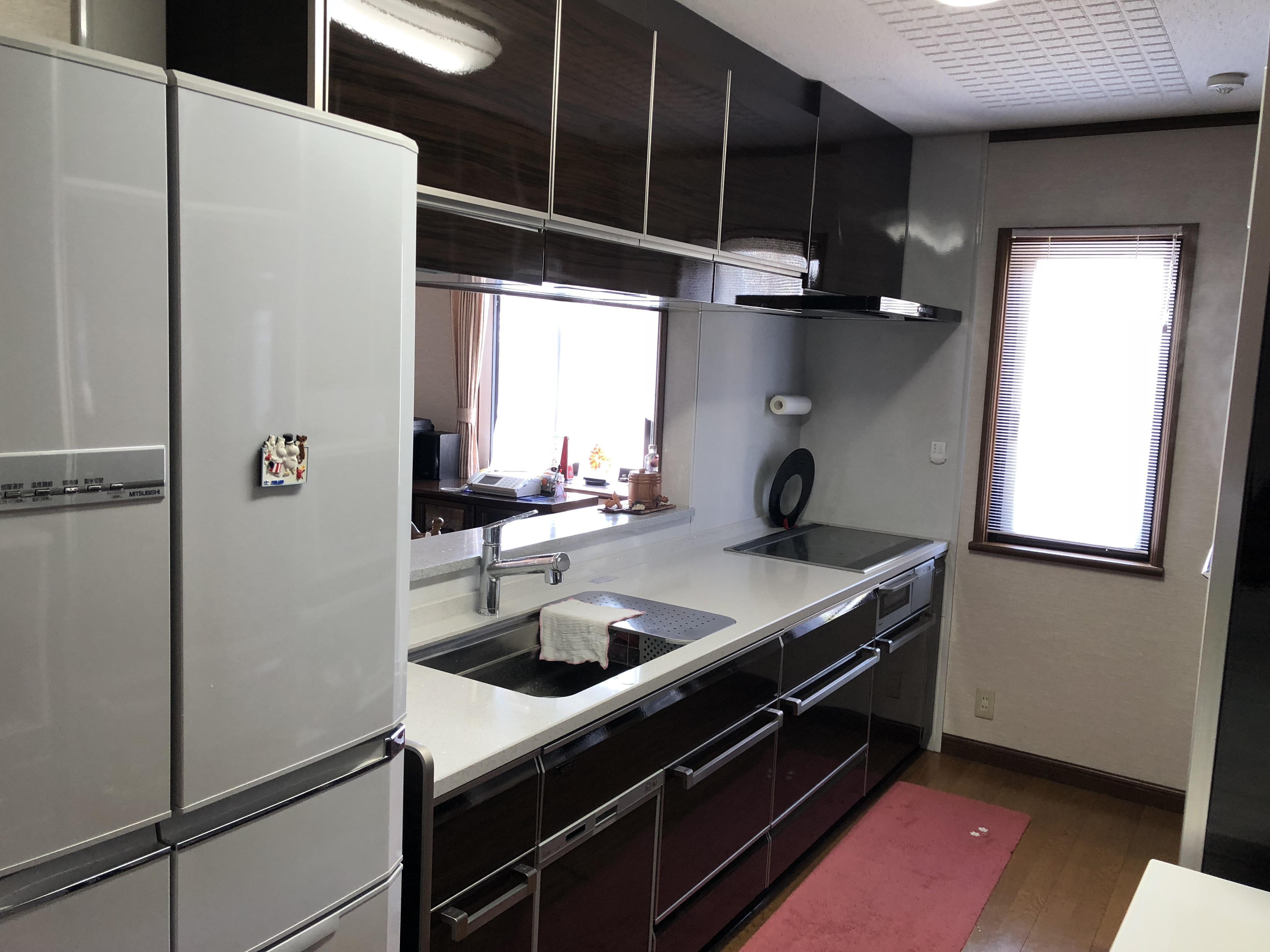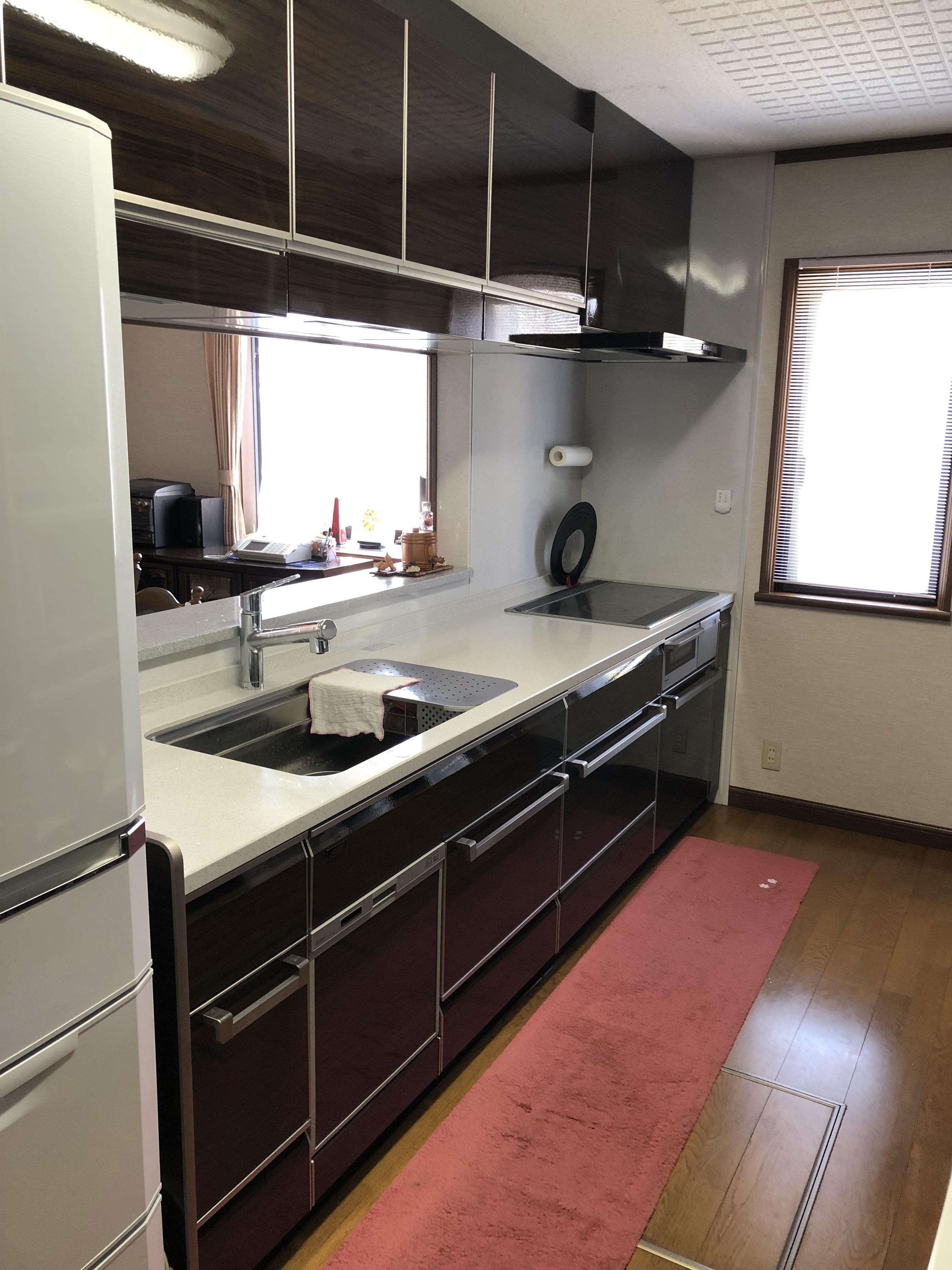 W3000のキッチンと大きな作り付けのカップボードを更にグレードアップして入替しました。ショールームでご主人が一目惚れされたタカラスタンダードのレミュー、ハイグレード扉とクウォーツストーン天板の組み合わせです。