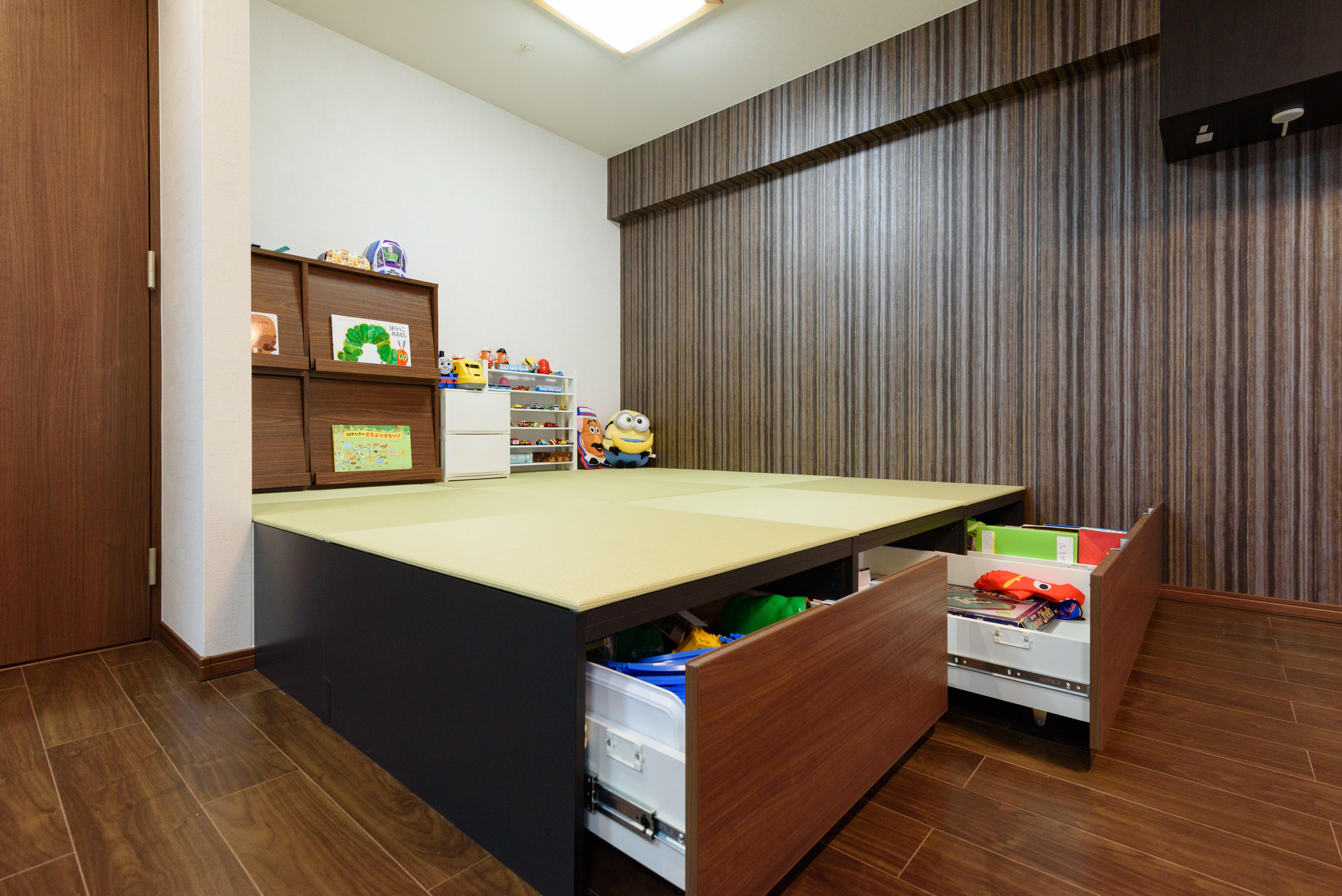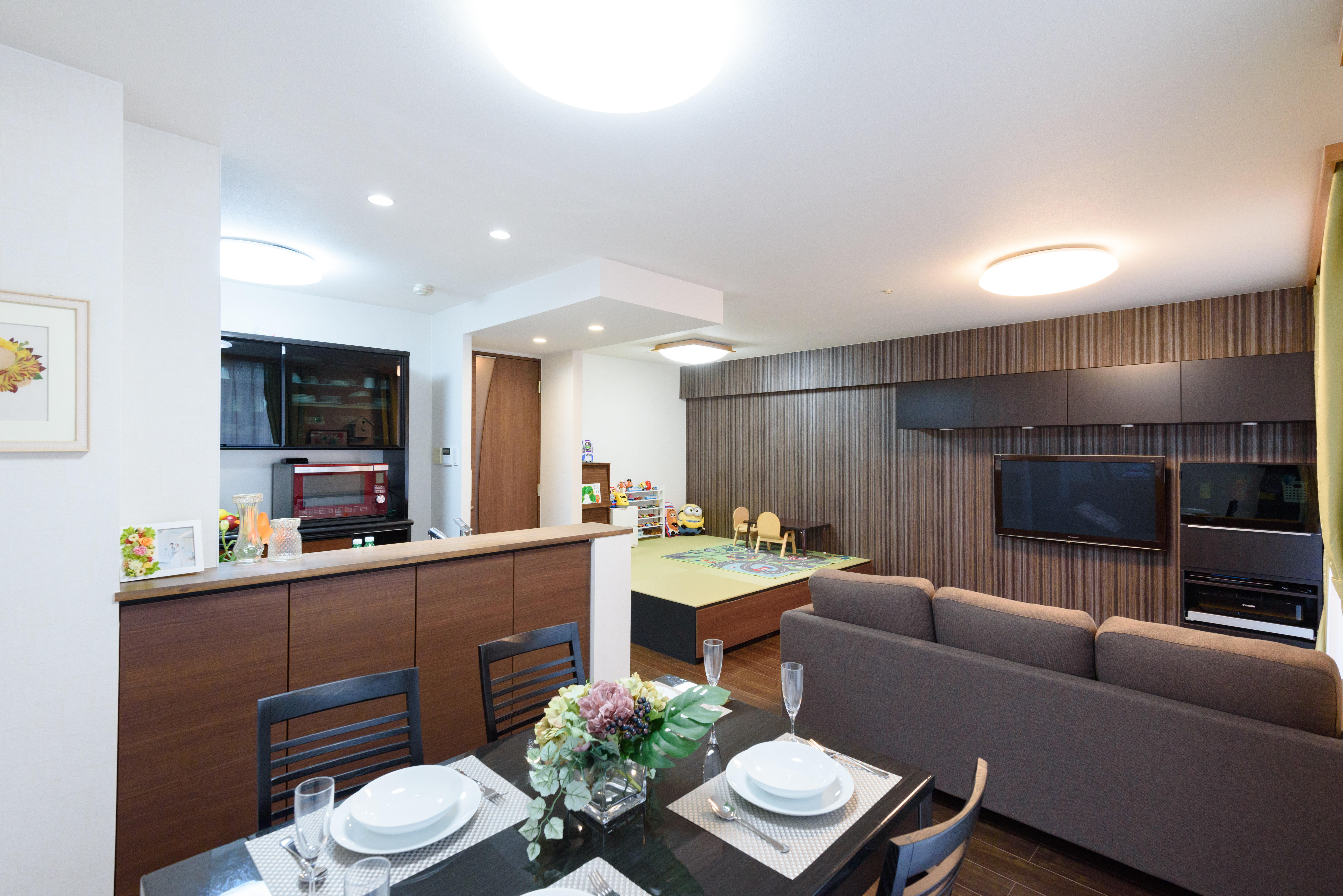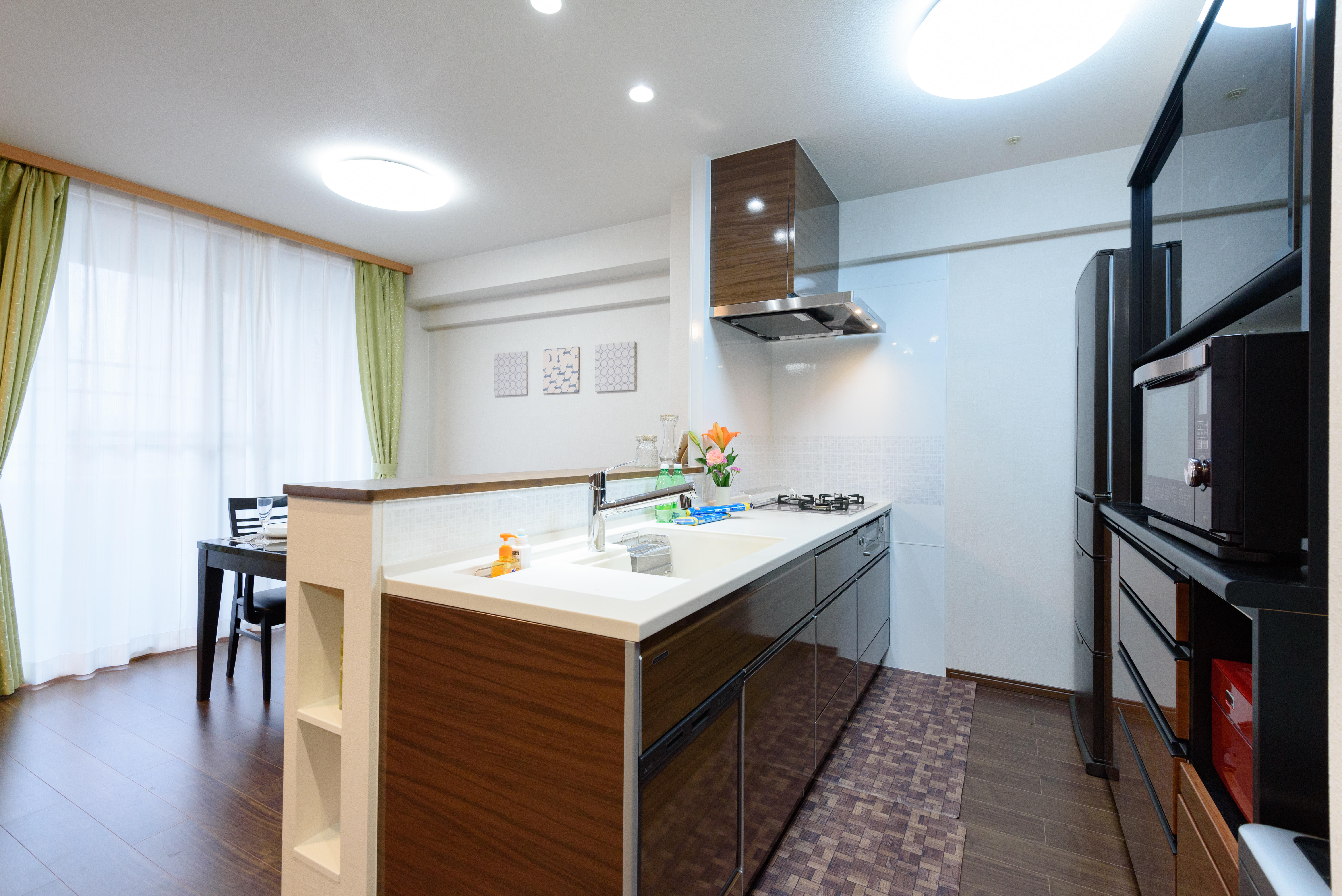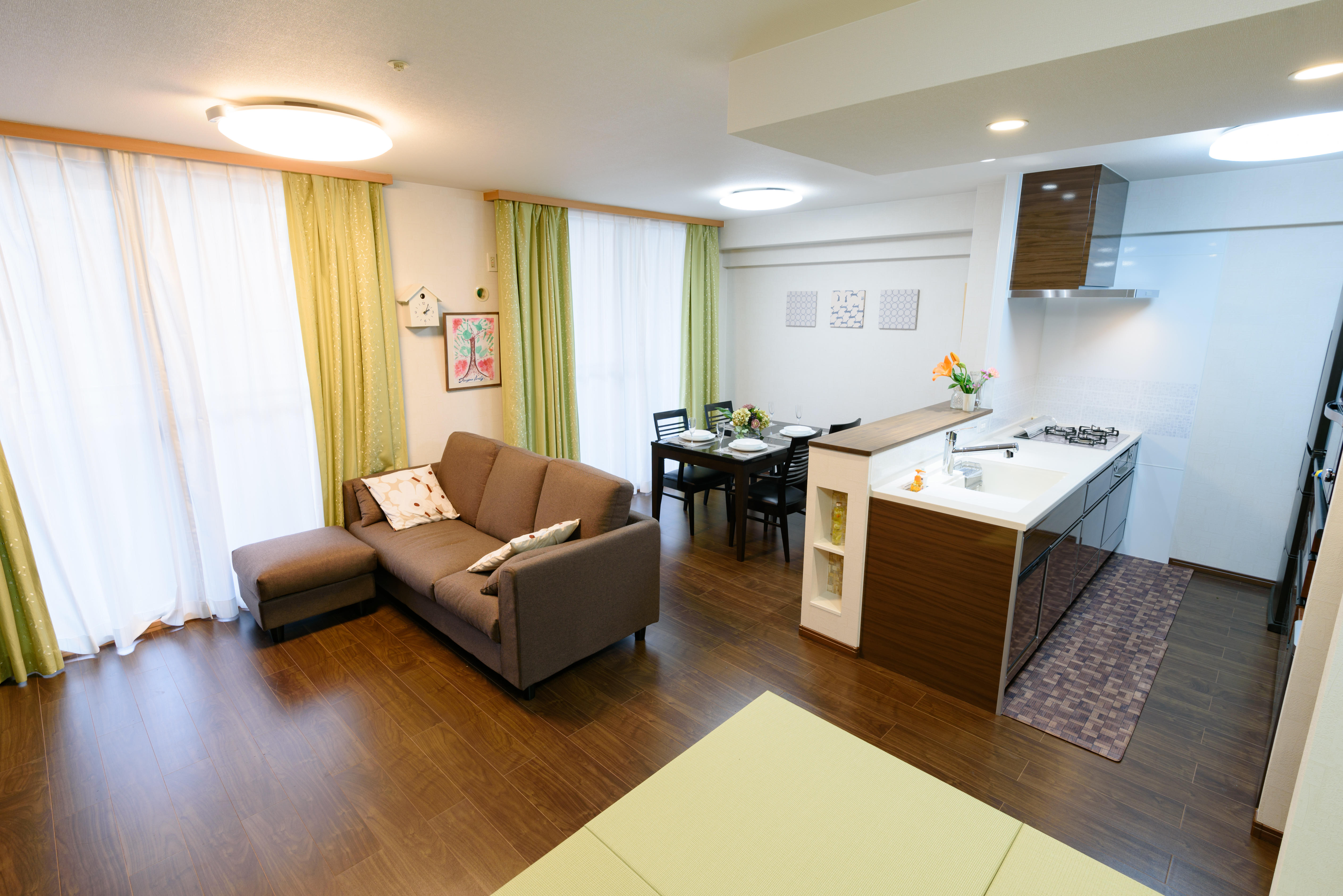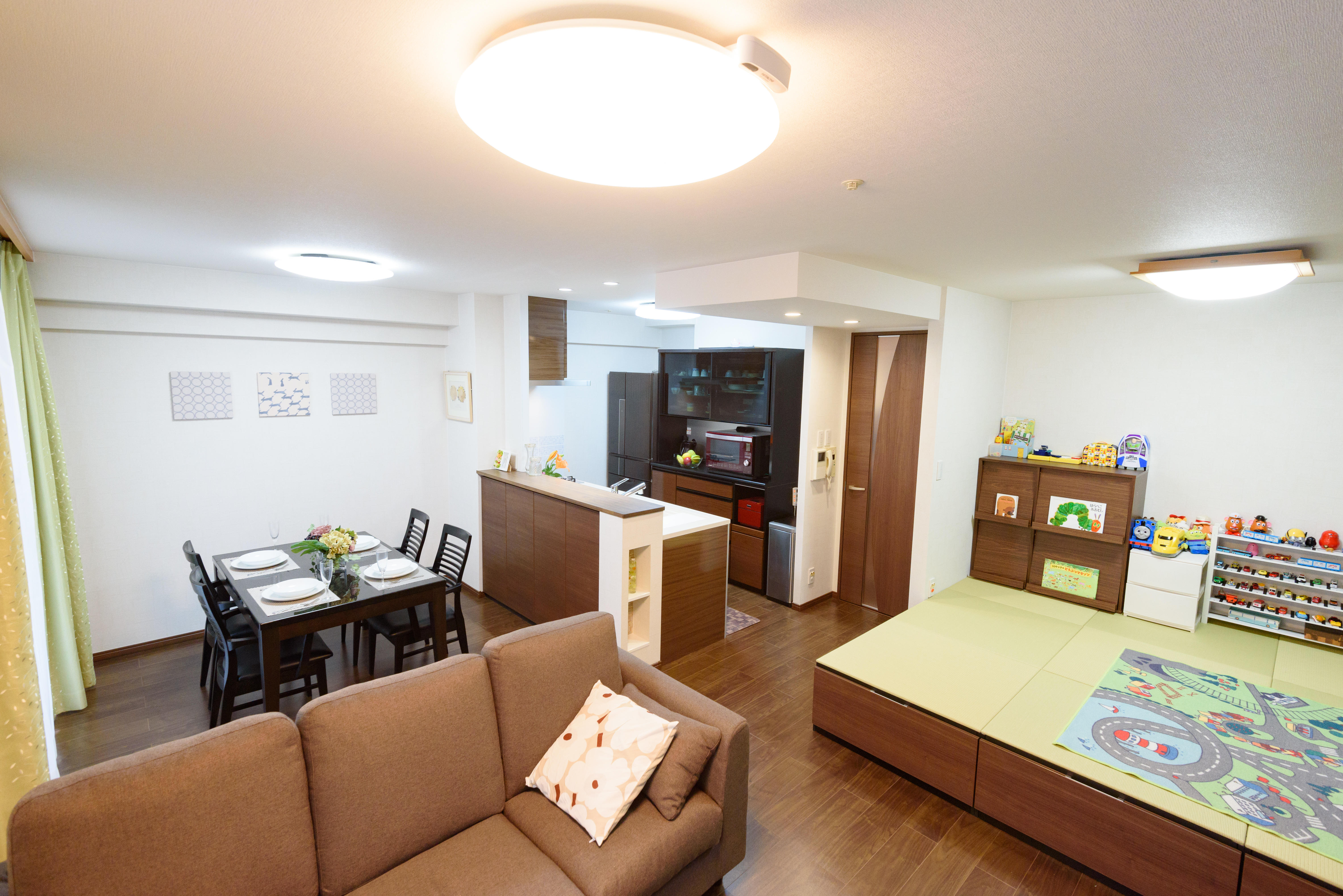 おばあ様の住まれていたマンションを引き継がれたF様。LDK+和室の壁を撤去して、インテリアサイトに出てきそうなオープンでオシャレなLDKにしたいとのご希望でした。スタッド柱が天井スタッドを受けている二重天井でしたので、壁を撤去するに当たり天井も撤去してスタッドを天井から吊り、強固な二重天井に作り替えました。以前よりもはるかに増えた収納スペースのお蔭で、スッキリ広々住まいに生まれ変わりました。