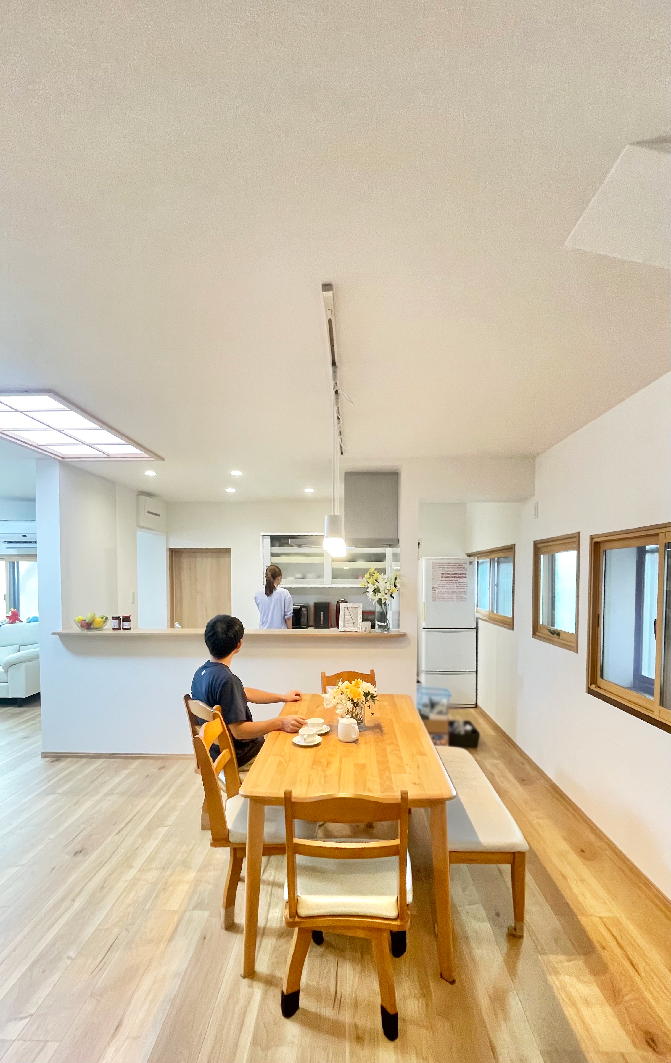 窓が沢山あるおうち。内窓(インプラス)を取り付けることで、例えばエアコンや暖房で調節したお家の空気を外に逃がさず冬は暖かく、夏は涼しい空気を保つことができます。廊下まで繋がっていた広いリビング・ダイニングも壁で仕切ることにより断熱性がアップ!LDKが快適で過ごしやすい空間になったことで、家族団らんの時間が増えお家の中がより明るく楽しくなりそうですね。