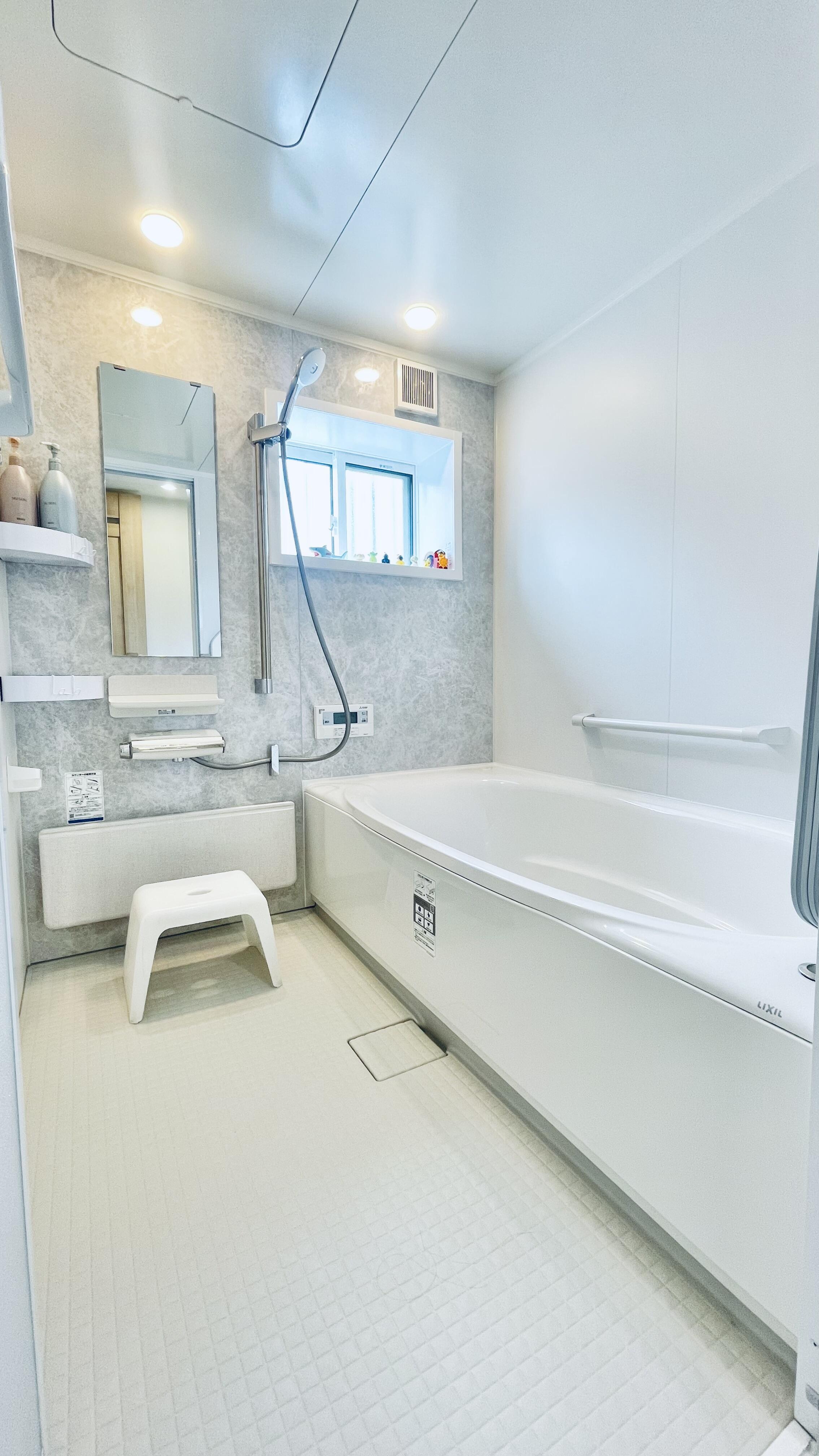 「廊下で洋服を脱いでお風呂に入っているので、もっと動線よくしたいです。」というご要望でしたので、浴室と洗面の場所を入れ替えました。それにより脱衣スペースを設けられ、誰かがお風呂に入っていても鉢合わせることなく洗面所を使えるようになりました。