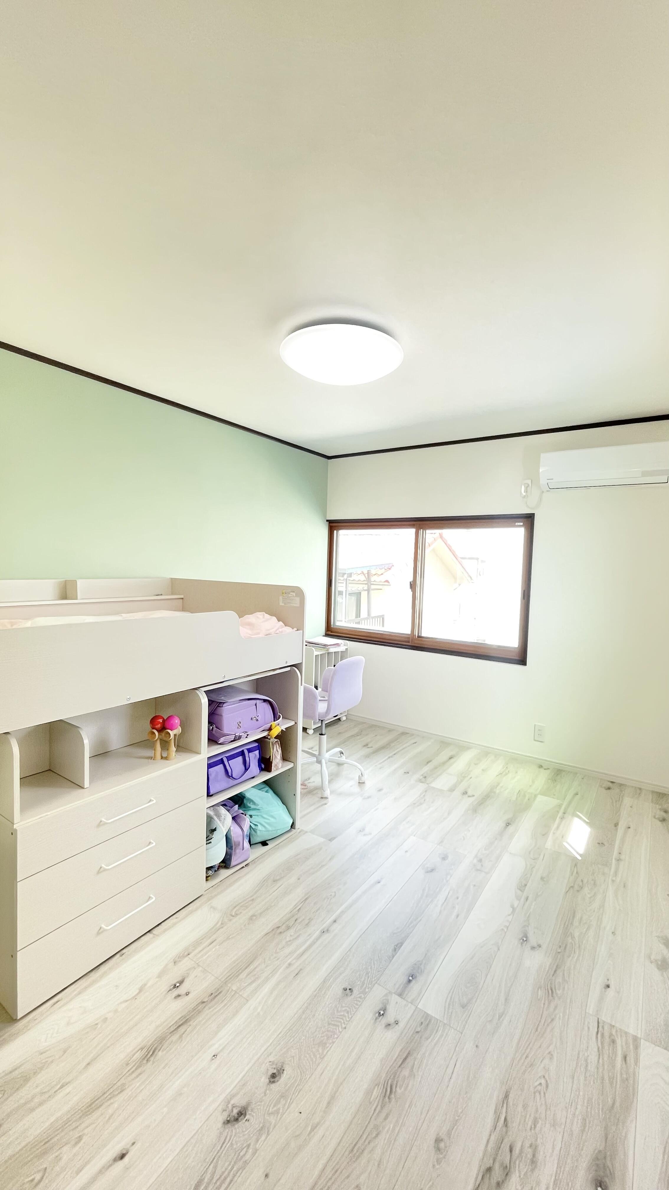 部屋同士を行き来できていた扉を無くし、壁を閉じることによって1つ1つの部屋に独立しました。クロス選びは娘さんがお手伝い♪