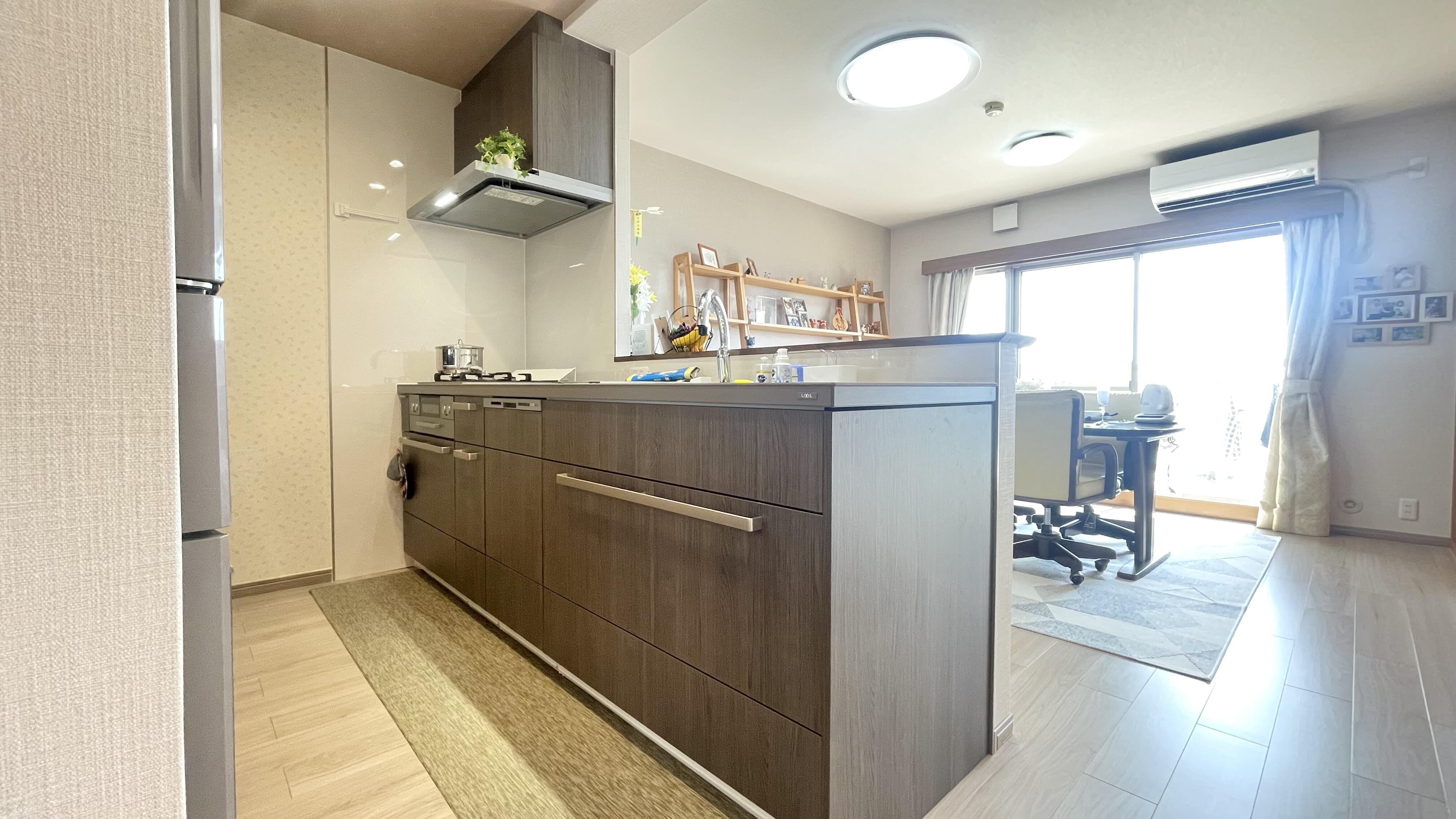 キッチンの垂れ壁を取ってすっきりさせてみてはいかがですか?とご提案。和室はそのまま残し畳と建具を入れ替えることで雰囲気を変えました。