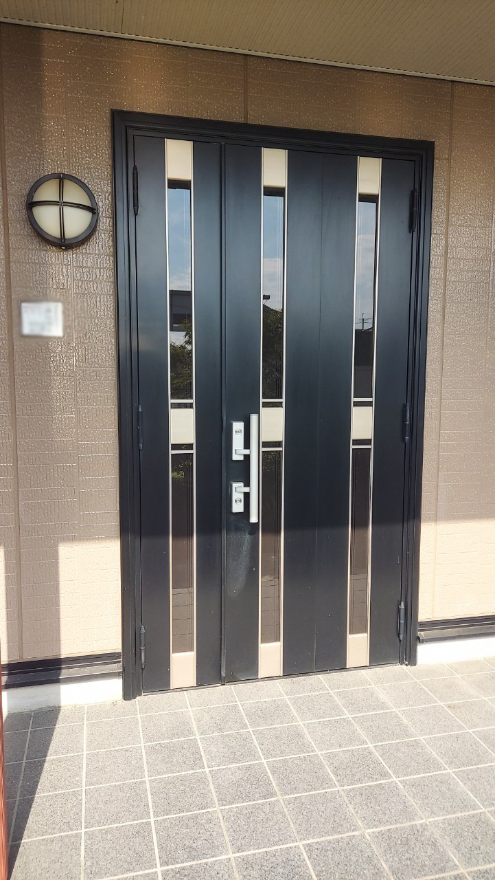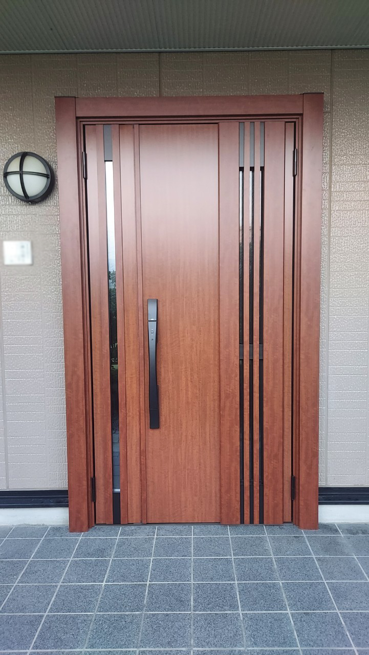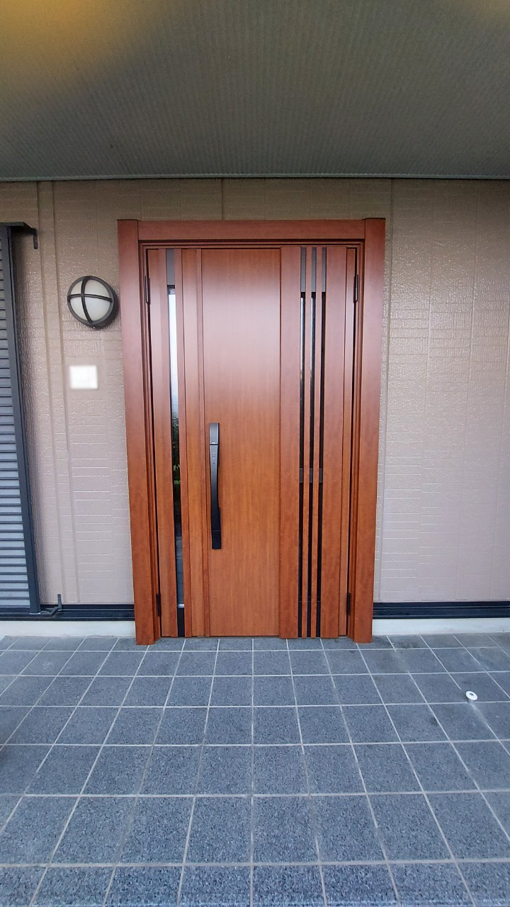 これまでお使いだったブラックの玄関ドアから、落ち着いたブラウンカラーへ一新。