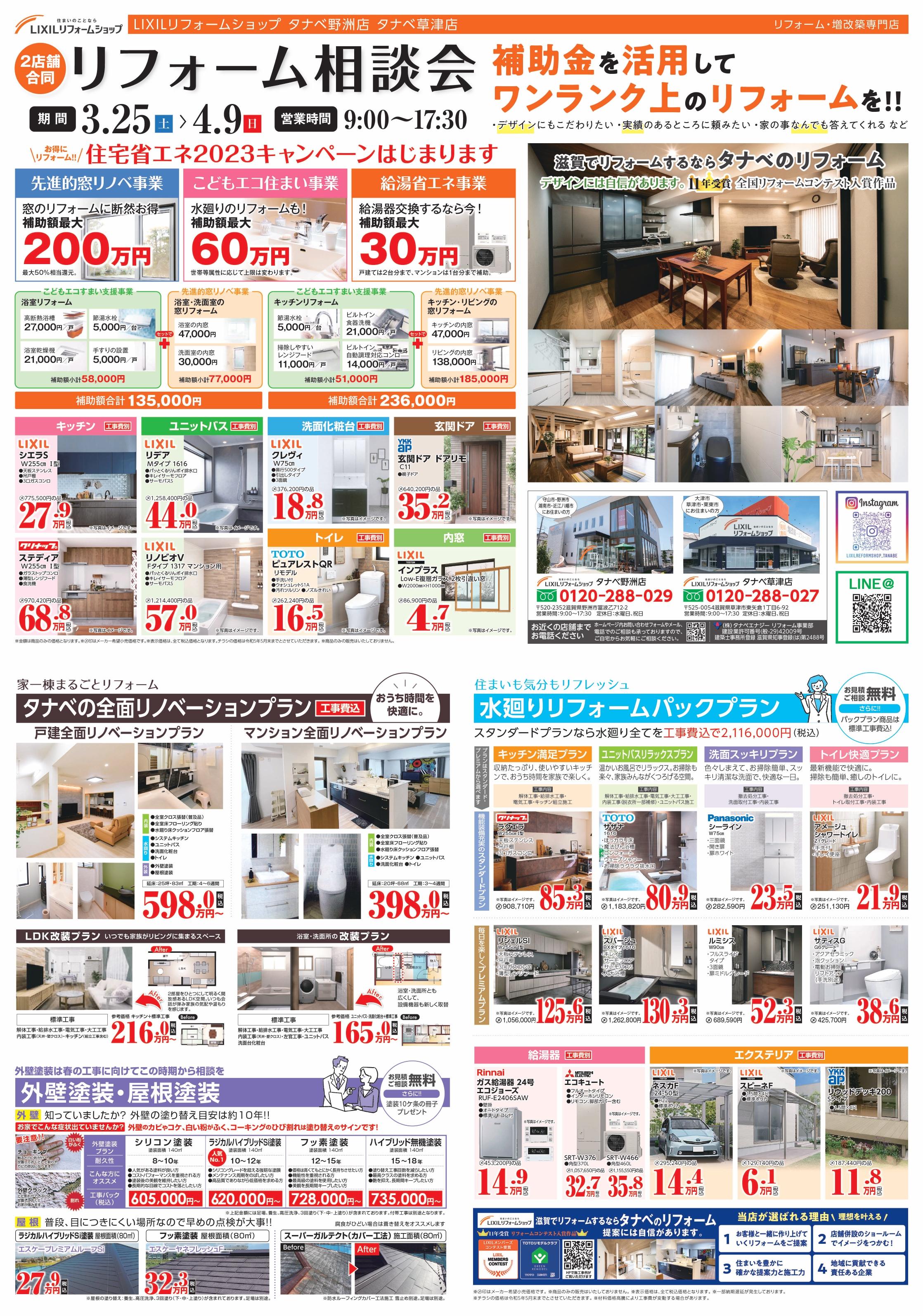 3/25()~4/9() 2店舗合同リフォーム相談会を開催します!