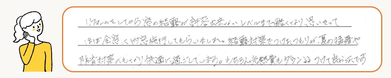 今回、2023年度住宅補助金キャンペーンにて断熱リフォームを工事させていただたお客様へアンケートを実施し、実際に体感したことをご記入いただきました。