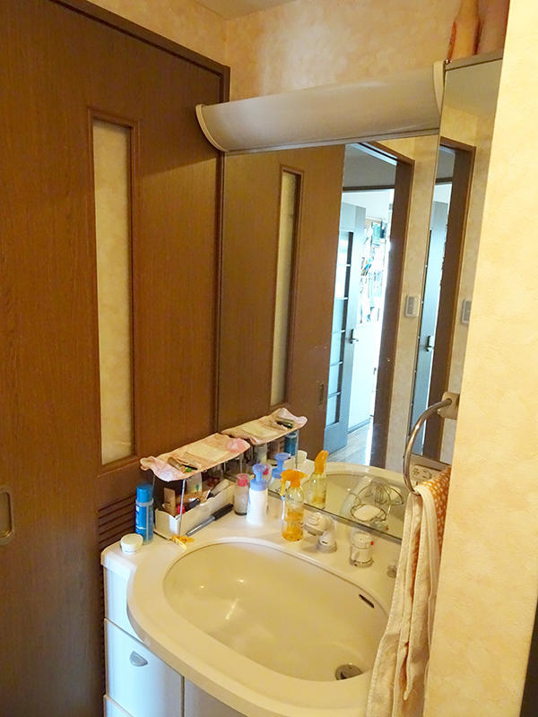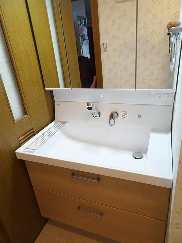 扉はフルスライドで開閉しやすく、クリアペール色でクロスの雰囲気とも合う明るい空間になりました。
