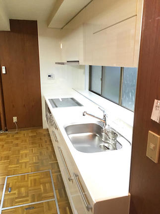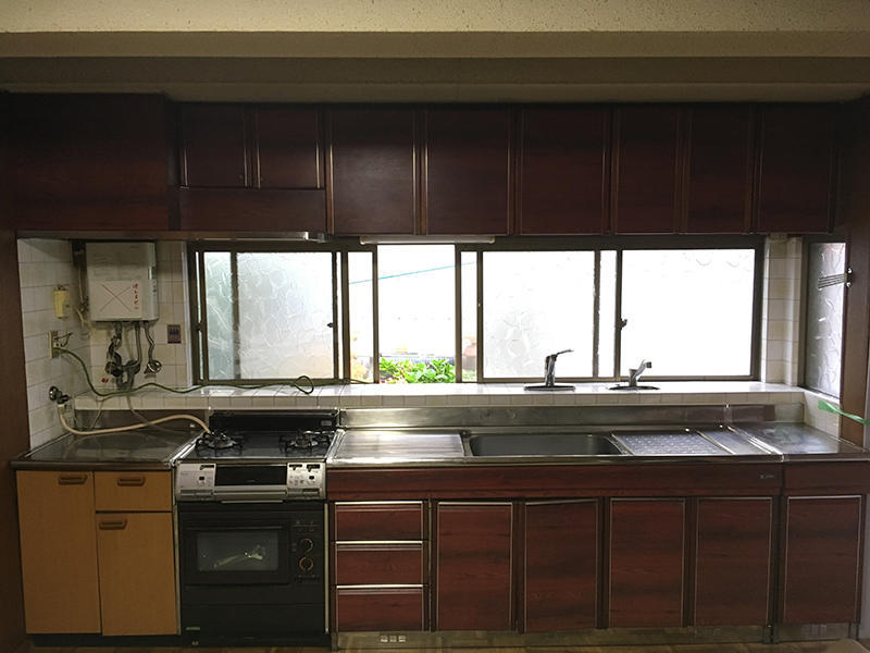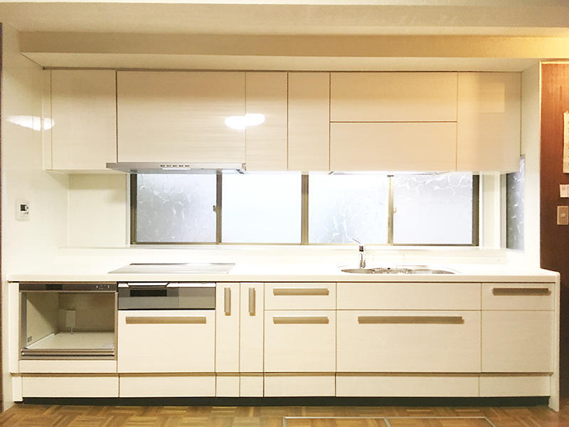 古くて使いにくく、使い勝手が悪くなったため、80代お母様、50代ご夫婦のために、誰もが使える年齢に配慮した使い勝手の良いキッチンへのリフォームをご希望でした。 キッチンのサイズはそのままで、使い勝手、収納力が優れたリシェルSIをご提案。お母様のために電動昇降式吊戸棚をご用意しました。