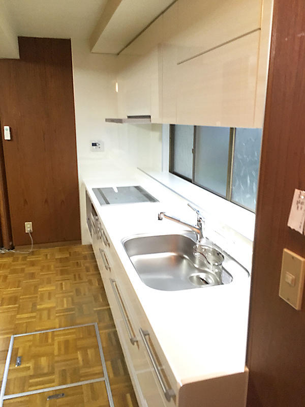当初、キッチンを小さくして冷蔵庫を並べる案でしたが、既設のキッチンと同様の配置の方が誰もが使いやすいことから、急遽変更、間に合いました。