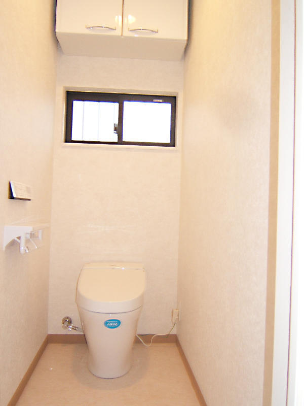 トイレは玄関の近くにすることと、手洗いを別に設置して、便器はコンパクトなものをご希望でしたので、コンパクトでスッキリしたデザインのタンクレストイレ、リクシル「サティス」ご提案しました。棚上に収納も設け、トイレルームにゆとりができました。