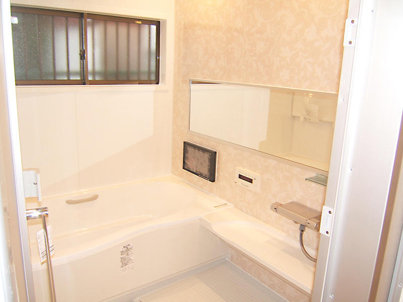 ユニットバスと脱衣室もできるだけ広い空間をご希望でしたので、コンパクトな中にもゆとりある入浴ができるLIXIL製のアライズをご提案しました。充分にくつろげる広い空間で、大きな浴室テレビもつき、快適なバスルームとなりました。
