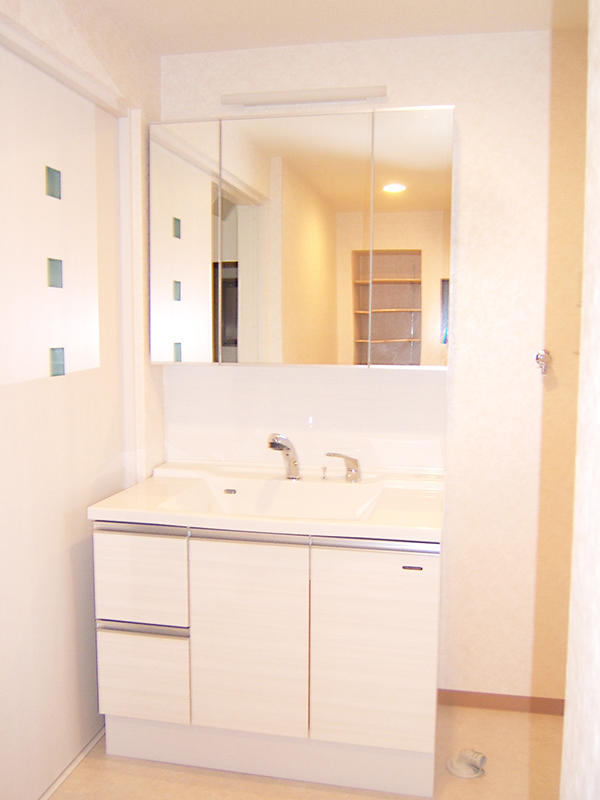 脱衣室も広々とお使いいただけるよう、収納力のある大型の化粧台をご提案しました。洗面ボール・キャビネット・扉が全て高品位ホーロー。 すみずみまで高品位ホーローだから、湿気がこもりやすい場所でも簡単なお手入れで、劣化なく美しく清潔に使えます。