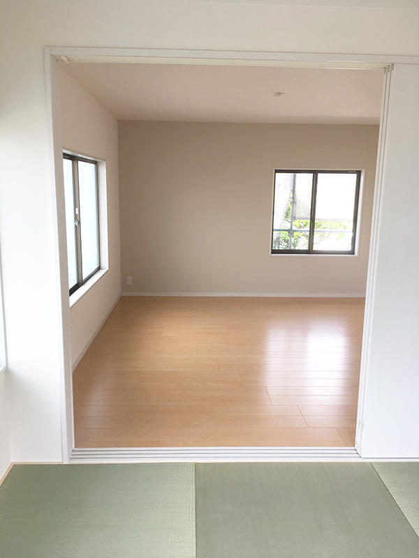 寒い、古い、汚い、暗い、使いにくい和室を洋室にしたいというご希望でしたので、断熱材を施工し、また複層ガラスでお部屋の断熱効果を高めることをご提案しました。たっぷり収納できるクローゼットの扉は、お部屋を明るい感じにしてくれる白にしました。ご希望の琉球畳を敷いた和室は、隣り合う洋室と調和がとれるよう引戸を白にしました。洋風な雰囲気に合うナチュラルな和室になりました。