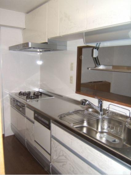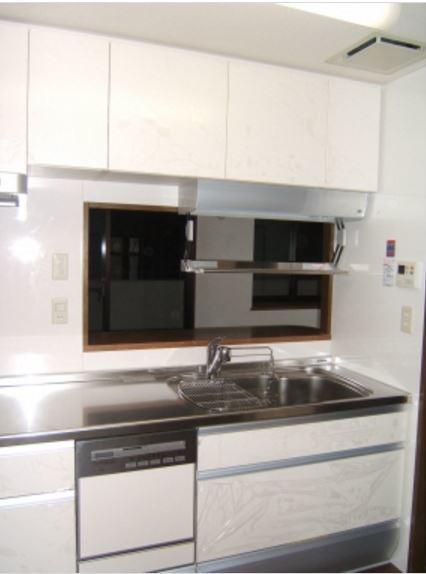 開き扉が使いにくく、マンションの限られたキッチンスペースには、圧迫感のあるカラーのキッチンでしたので、いくつかの候補の中から、クリナップの「クリンレディ」を取付けしました。機能・デザイン・価格など色々な検討事項がありましたが、結果としてとてもご満足いただけました。 おそうじしやすいレンジフードや食洗機を装備し、吊り戸には小物収納に便利な棚をつけましたので、すっきりと無駄のないキッチンになりました。