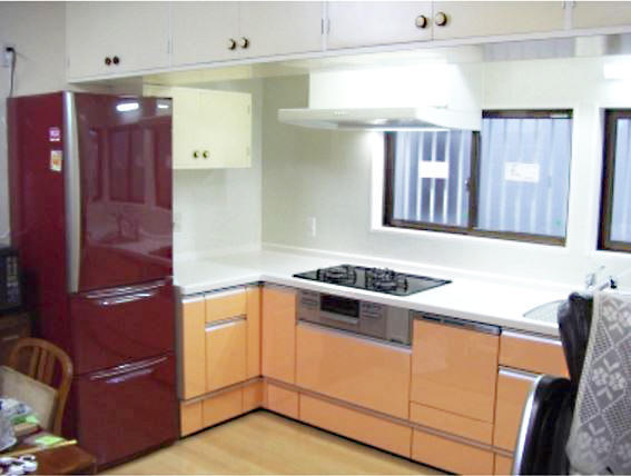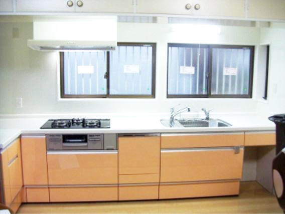 キッチンの動線が長く、物があふれて使いにくいとお悩みだったため、出窓の部分を増築し、キッチンスペースを広げました。 新しく上部にも窓を設置しましたので、明るく開放的なキッチンになりました。 ダイニングスペースにもゆとりができたので、お客様にも喜んでいただけました。