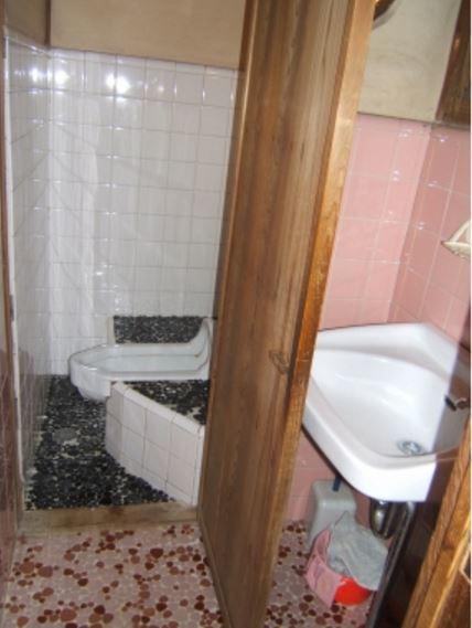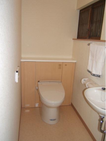 和式トイレから洋式へのリフォームでした。1畳ほどのスペースの和式トイレが、便器と手洗いとに半畳づつに分かれていて、それぞれがとても狭くて、使いにくい状態でした。そこで間仕切り壁を撤去して洋式の便器と手洗いを設置し、広くて使いやすいトイレをご提案しました。壁・天井はビニールクロス貼り・床はクッションフロア貼りで、お掃除もしやすくなりました。