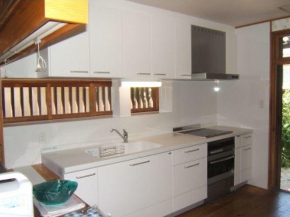 キッチン・浴室・洗面室のリフォームでした。とにかく物が多いキッチンをすっきりとさせたいというのが一番のお悩みでした。また、古くなってきた浴室と洗面もこの際に一緒に直したいとのご要望でした。キッチンは本体はもちろんカップボードも設置してたっぷりと収納がとれるようにしました。浴室と洗面もお手入れのしやすさとデザインを重視してお施主様と一緒に商品を選んでいきました。キッチンも浴室、洗面も明るくて使いやすくなったとお喜びいただけました。