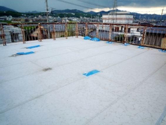 屋上部分の防水シートが破れており、完全に補修されていなかったので、雨漏りの原因となっていました。 また天井に水がまわっている状態で、床もめくれていました。