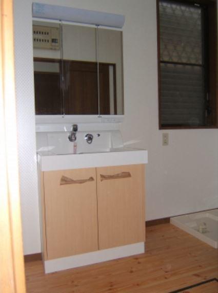 キャビネットが痛んできて、洗髪もできないタイプでしたので、3面鏡の洗髪型の化粧台に取替えました。収納が増えて小物もすっきりとしまえます。また、洗面室への扉も取り替えて、内装もすべて新しくしました。