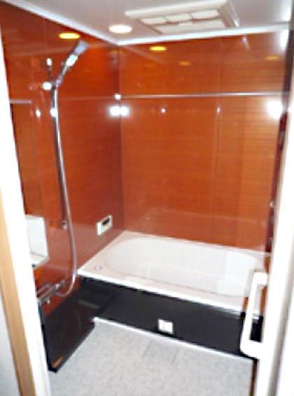 和モダンなカラーで統一されたユニットバス。保温浴槽で機能も充実。