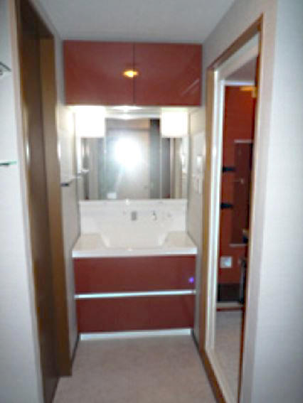 隣接するユニットバスのカラーに合わせて選んだ商品。メーカーは異なりますが、同じようなカラーで統一され、すっきりと見えます。