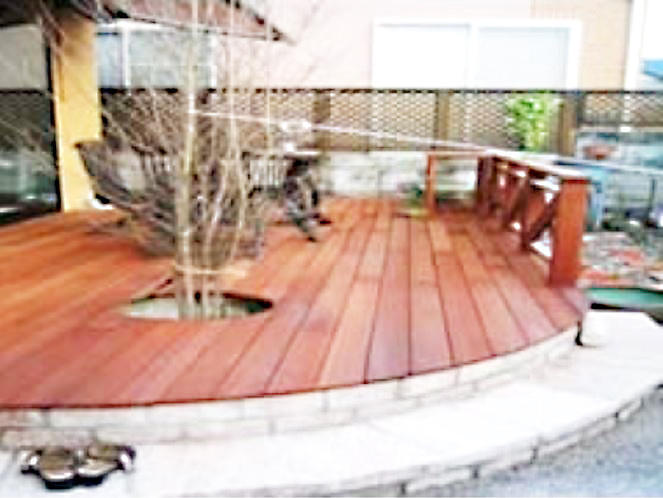 木が生い茂るお庭は、手入れが大変とのことでした。せっかくのお庭スペースがもったいない印象でしたので、ウッドデッキとコンクリートでデザインされたお庭をご提案しました。お手入れも簡単になり喜んでいただけました。