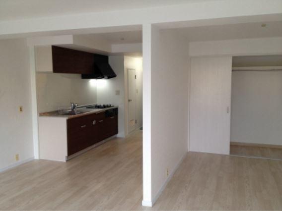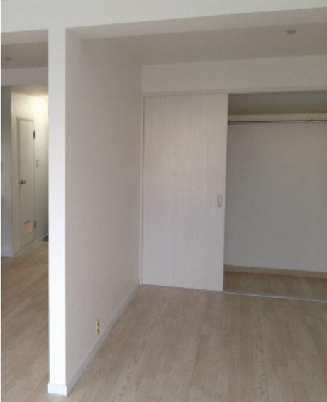 4部屋あったお部屋を1部屋に改装。 低予算ご希望でしたので、フロア張りにはせず、あえてCF貼りに。 また、明るい部屋をご希望でしたので、床は白基調の木目のCFを、クロスも白の漆喰調を選びましたので、明るく広々としたお部屋に納まり、とても喜んで頂きました。