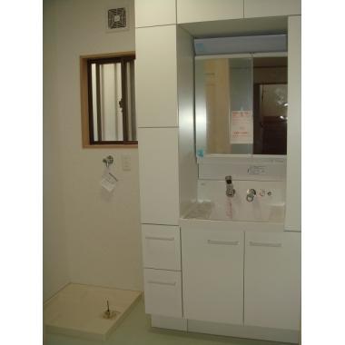 洗面所の寒さの改善と収納量を確保したいとのご要望でした。浴室乾燥暖房機を浴室と洗面所の2室暖房にして、冬場の寒さを改善しました。また、洗面所まわりの収納を組み合わせ、収納量を確保しました。「LIXIL ピアラ」