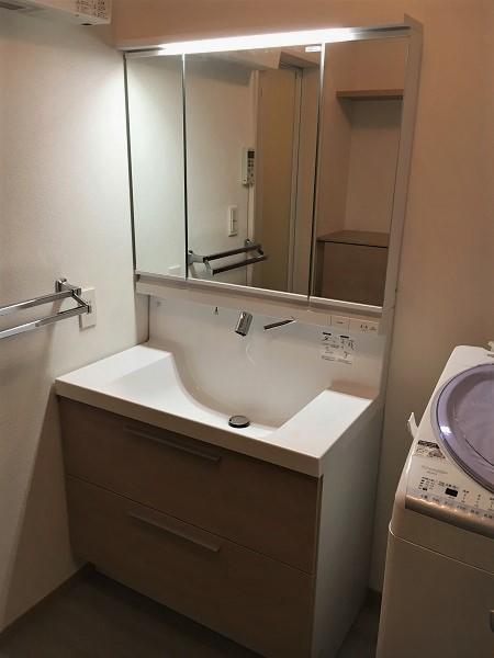 洗面台が古く汚れてきたので、収納できてすっきりした洗面台にしたいとのご要望でした。
