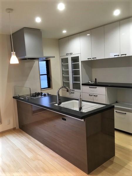 黒を基調としたシックな印象へと生まれ変わりました。還元水素水生成器がついたものをご選択されています。「キッチン:Panasonic Lクラス 2428 50シリーズ」