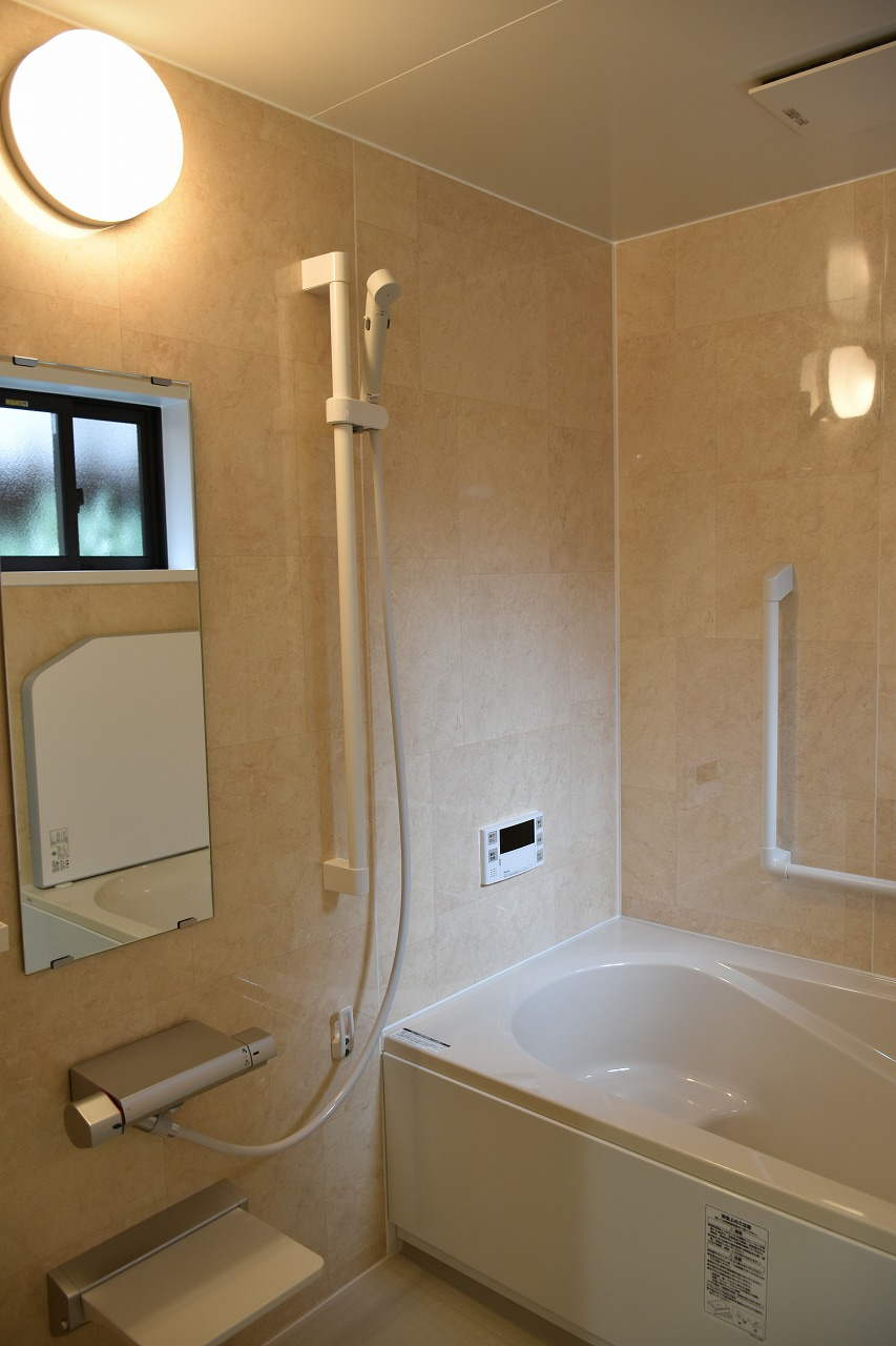 目と鼻の先に銭湯があり、長年にわたり浴室のない住居でした。その銭湯も数年前に廃業されてしまい、以降裏庭に設置された簡易シャワーユニットをご利用されている状況でした。その空間を最大限活かし1418サイズのユニットバスを今回設置しました。