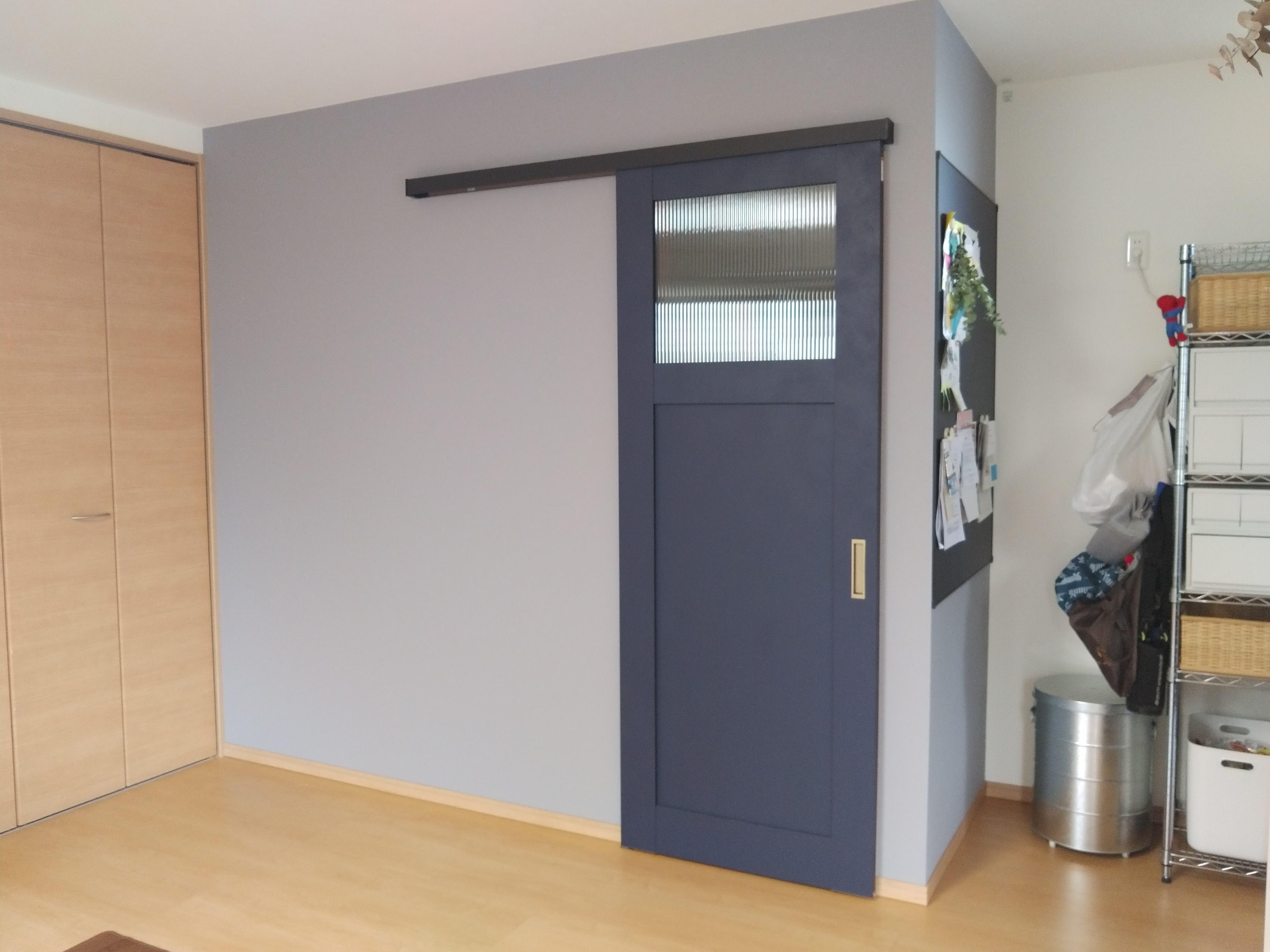 リフォームの提案をさせていただく上で、心掛けているのがSimpleであること。 分かり易い簡単な言葉を使って説明する。 お客様の希望に対して過剰とならないような提案をする。 Simpleって簡単なようで難しかったりますね。。。 Simpleでいてデザイン性も高い建具が【LIXIL ラシッサD】シリーズ。 今回、ドアの交換だけでなく、リビング側のキッチンから見える所へ【ラシッサ マグネットボード】を取り付け、家族の情報が一目で分かるようにしました。アウトセットレールの特注色「チャコールブラック」と合わせた、ブラックのボードを選択しています。また、【ラシッサD ヴィンティア】の「ネイビーブルー」の色に合わせ、アクセントクロスとしてグレー系に変えることで落ち着きのある雰囲気に。 お部屋の雰囲気をガラッと変えたい、開きドアを引戸に変えたいといったお悩みにぜひご検討いただければ幸いです。
